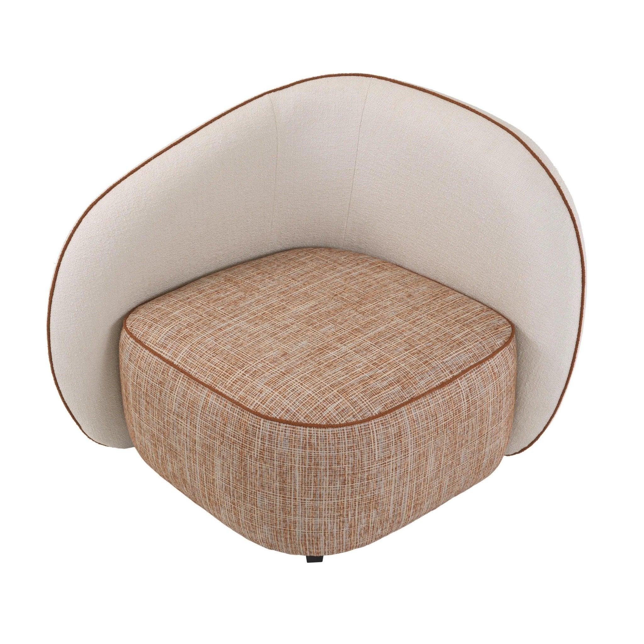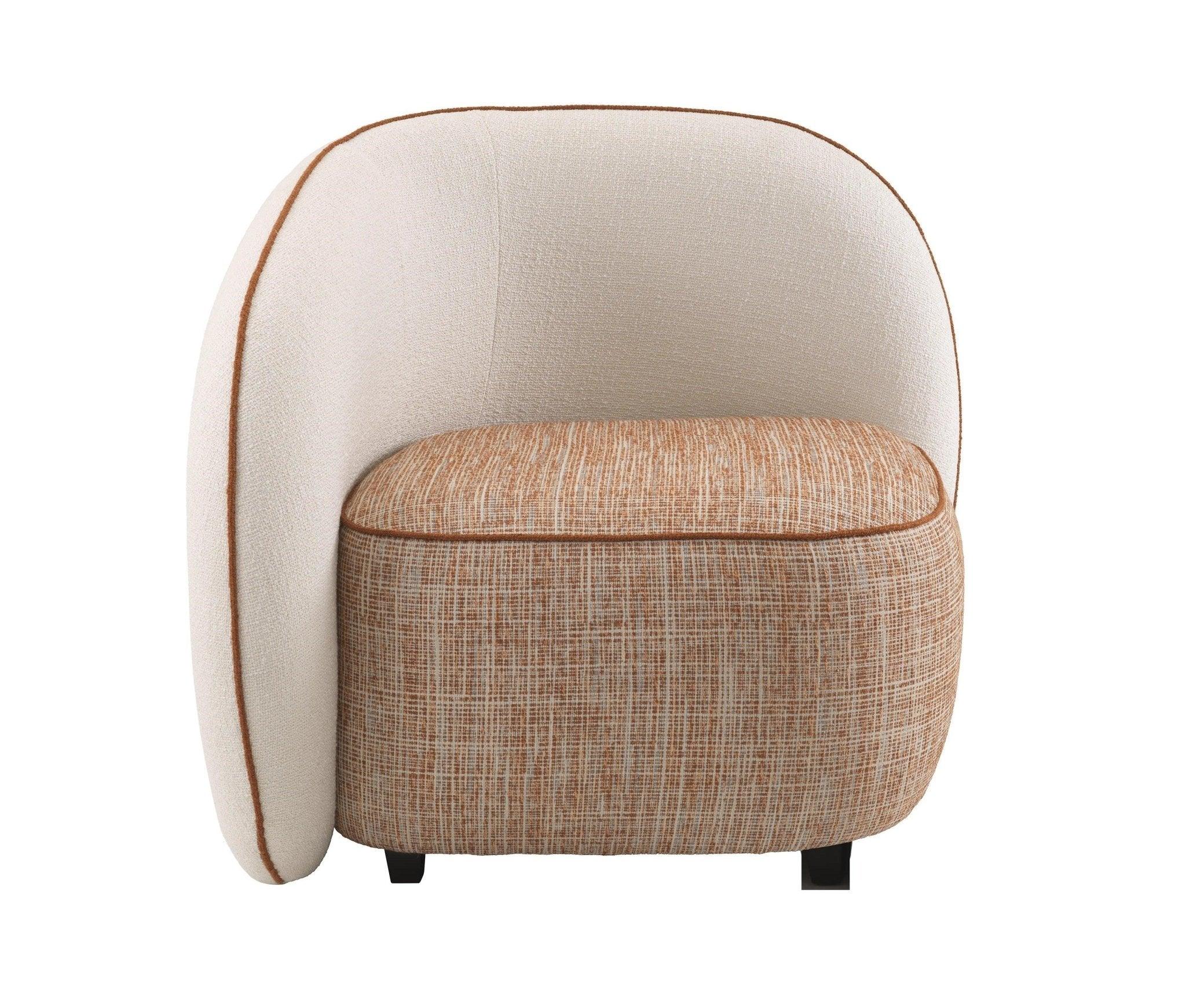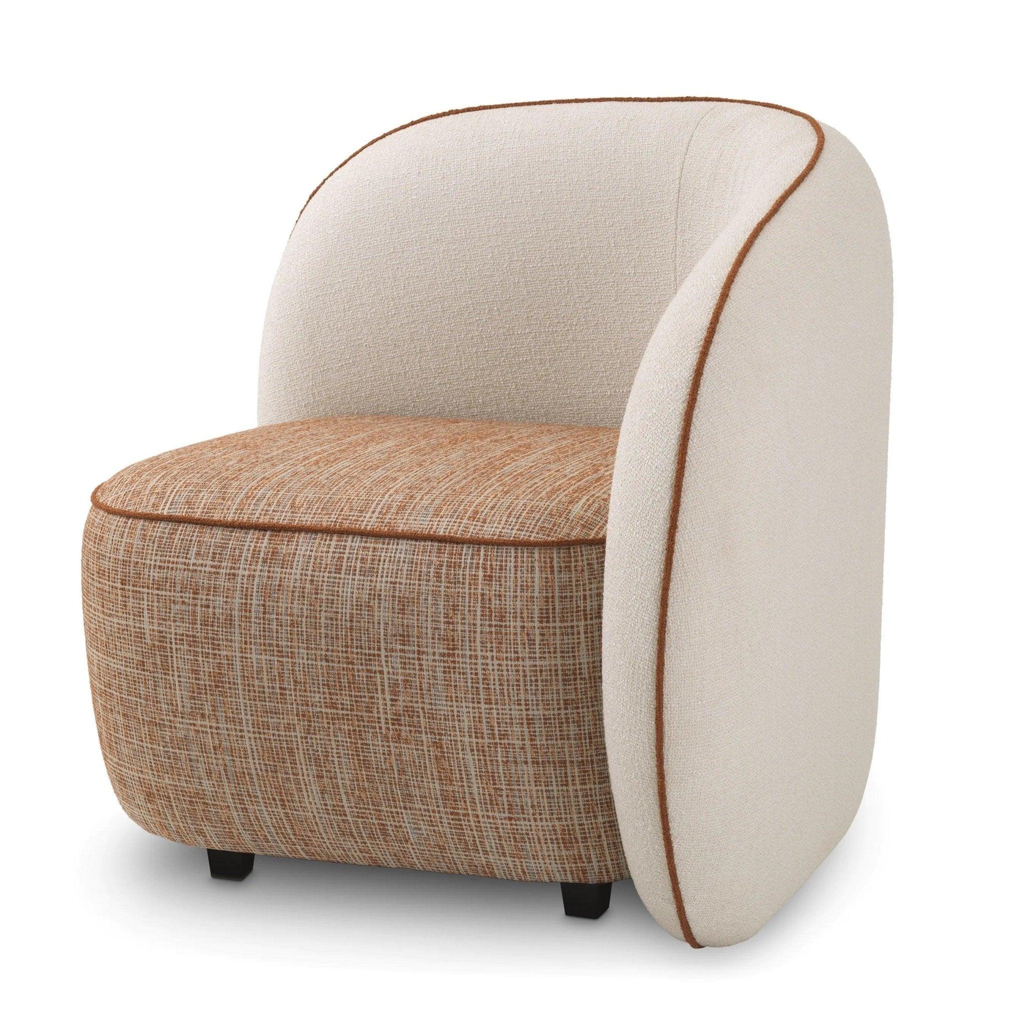 Frame beige chair San Marino is entirely upholstered with cream and orange fabric that exudes vintage style, emphasizing both unique design and comfort. The orange trim adds an unusual charm and elegance to the armchair.