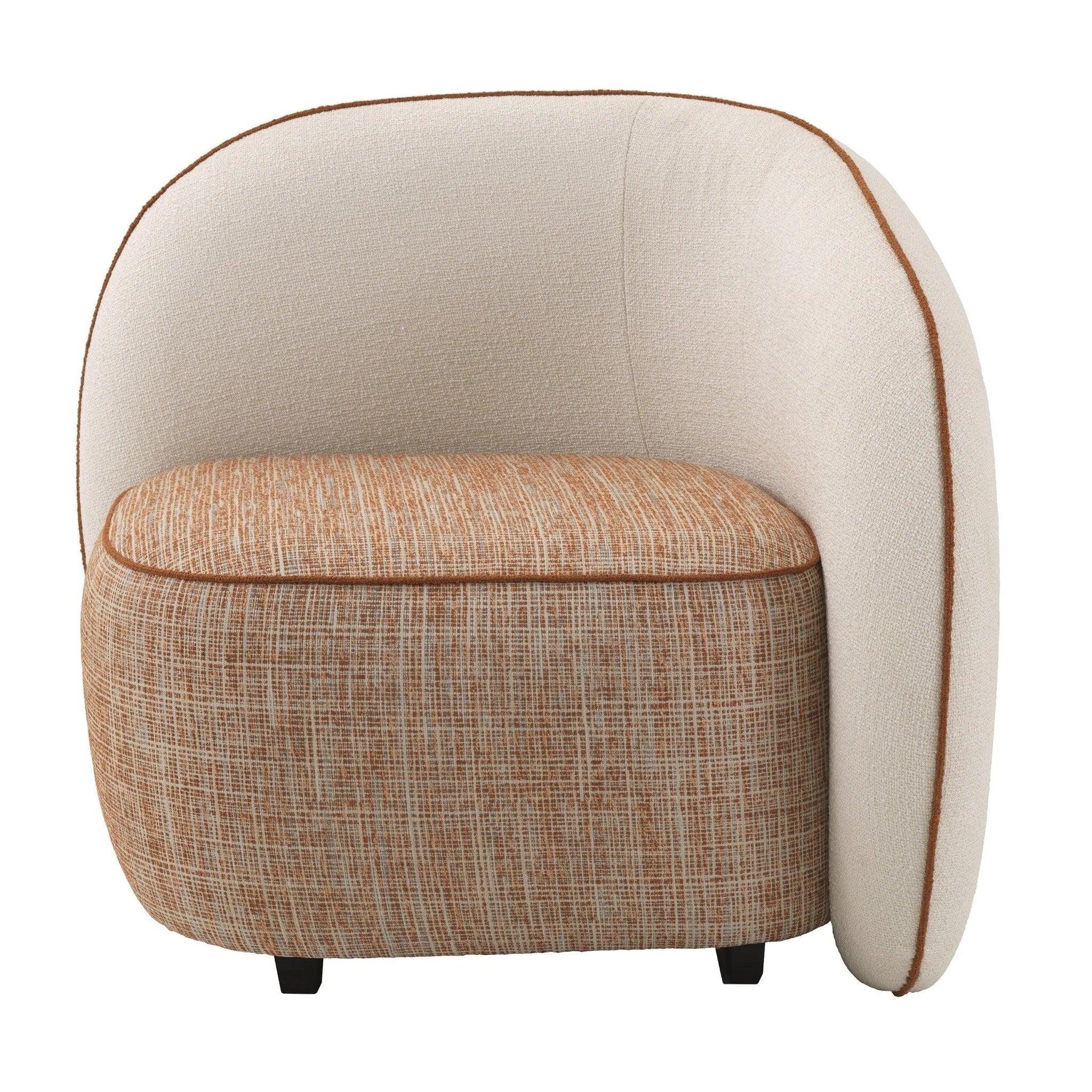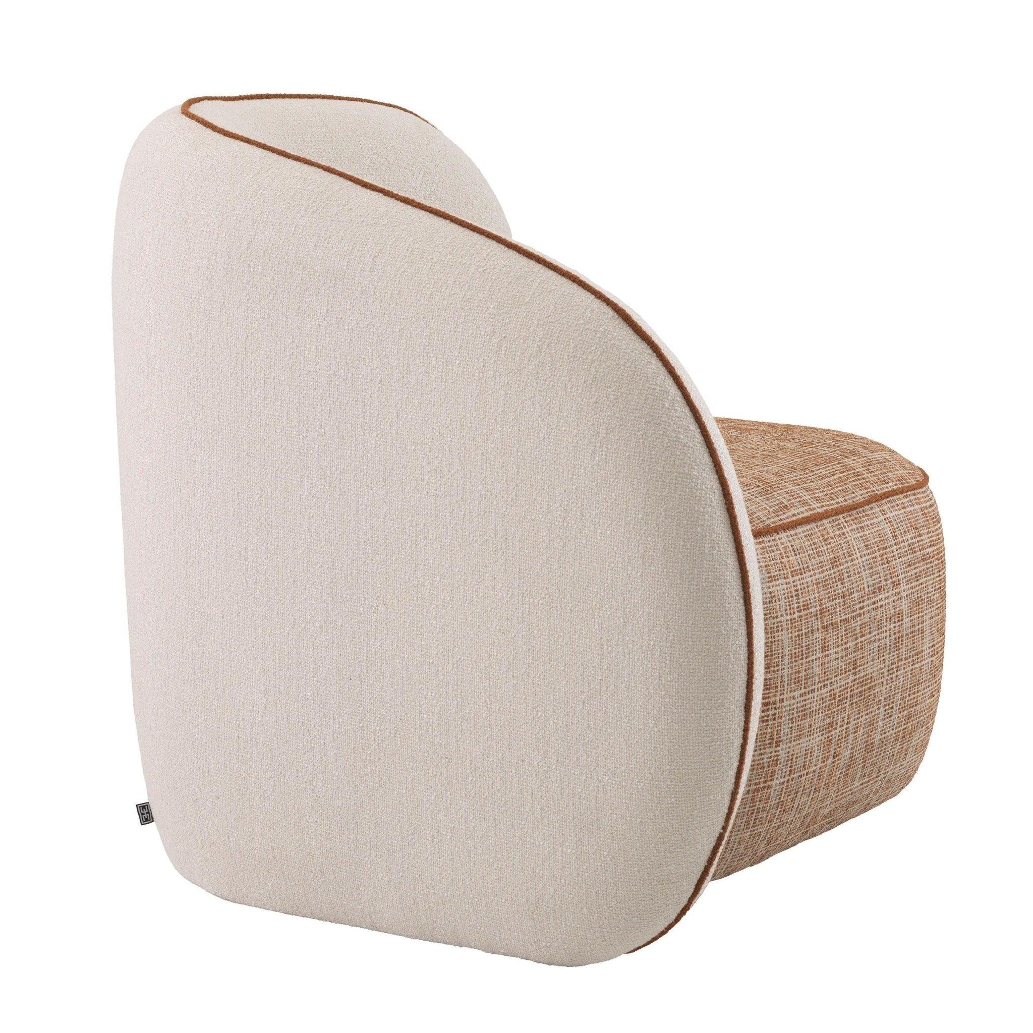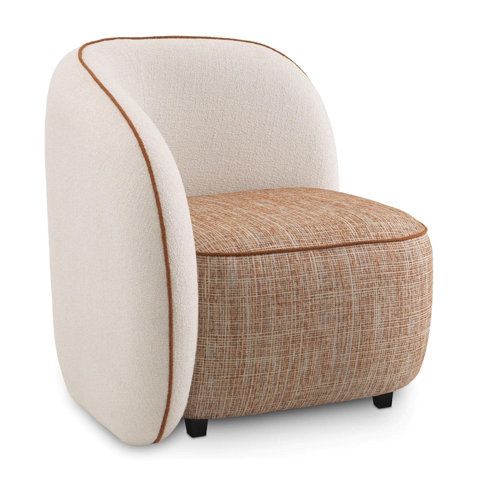 Frame beige chair San Marino is entirely upholstered with cream and orange fabric that exudes vintage style, emphasizing both unique design and comfort. The orange trim adds an unusual charm and elegance to the armchair.