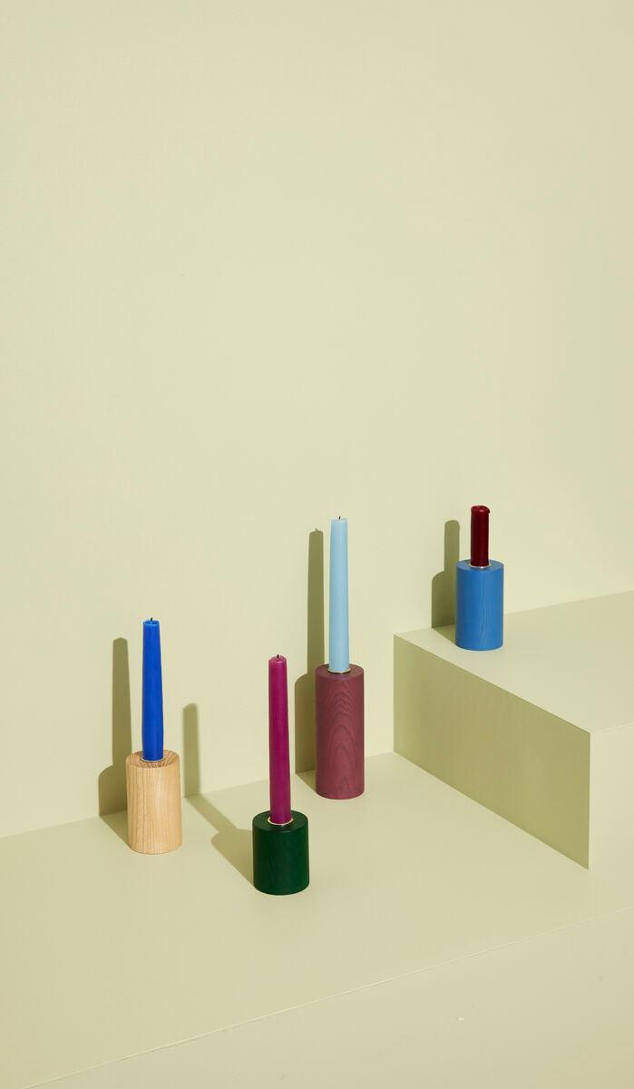 Crayon is a set unique candlesticks made of oak wood. Different heights and vibrant colors will help create a unique composition on a dresser in a modern living room or on a windowsill in the bedroom in a retro climate.