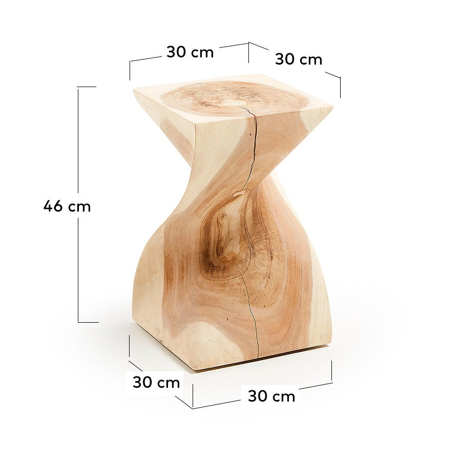 Stolik boczny z rzeźbionym wnętrzem HAKON lite drewno mungur La Forma    Eye on Design