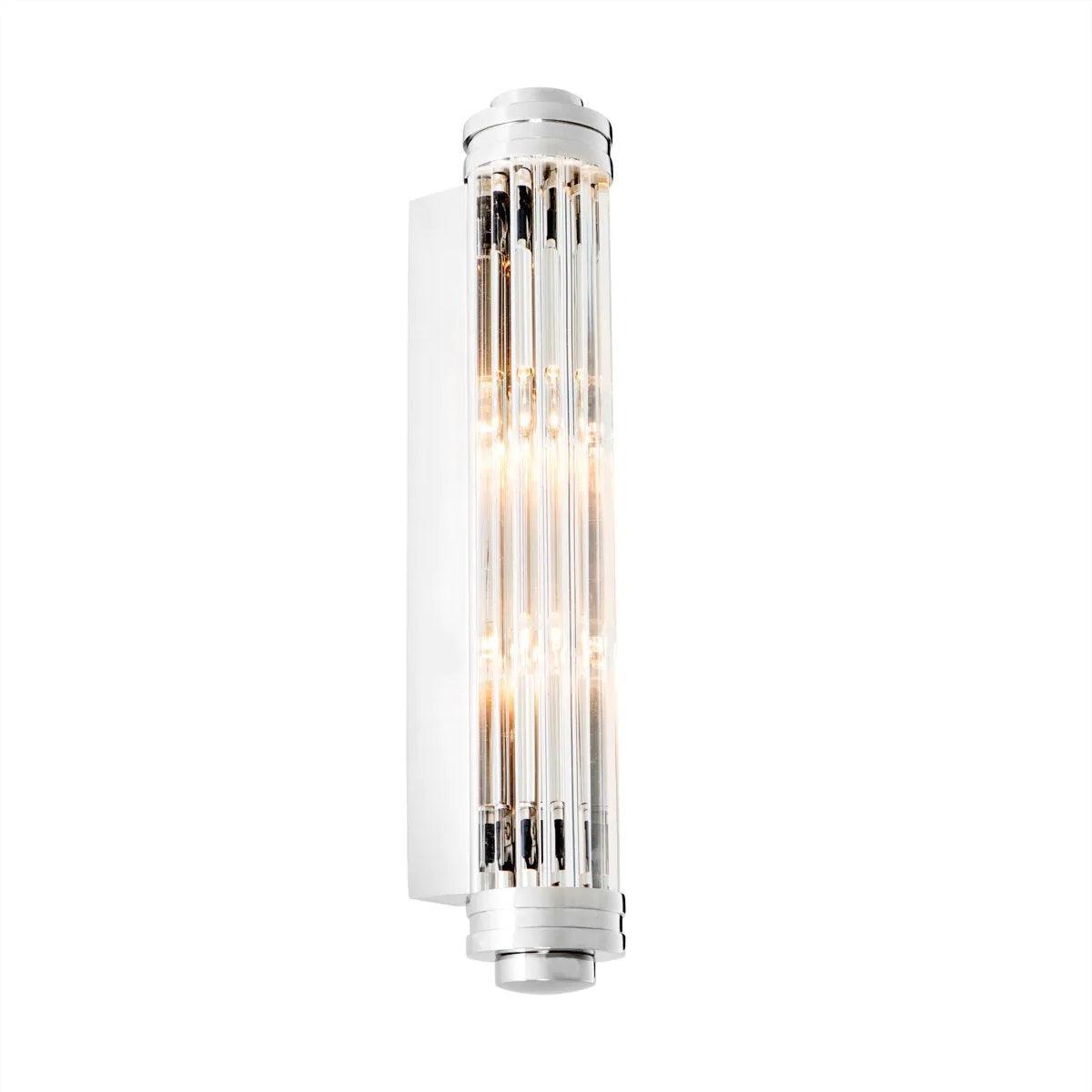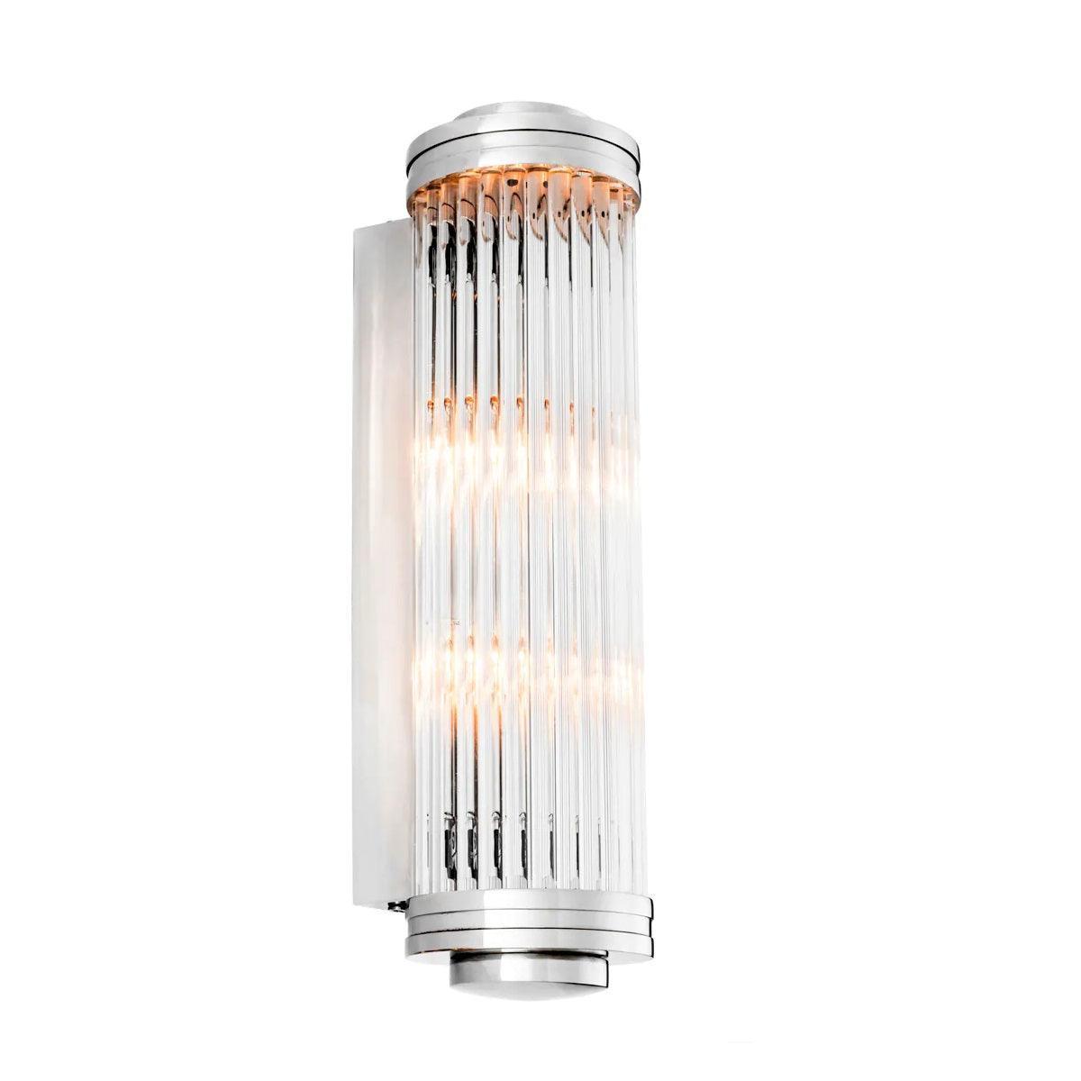 Wall lamp Gascogne is a unique way to immerse your interior in a soft and warm glow. This lamp with a lampshade Made of ribbed and chapted transparent glass, it is a tribute to the aesthetics of theater lamps in the style of Art Deco, which makes your interior gain cosmopolitan style and glow.