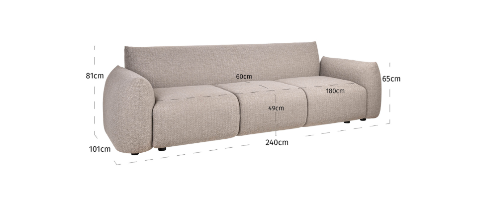 Sofa Dawson is designed with durability and comfort in mind, offering a spacious area for relaxation. Materials such as PU foam, Olefin, and 100% polyester ensure its resistance to weather conditions, including frost and moisture, making the sofa ideal for outdoor use all year round.