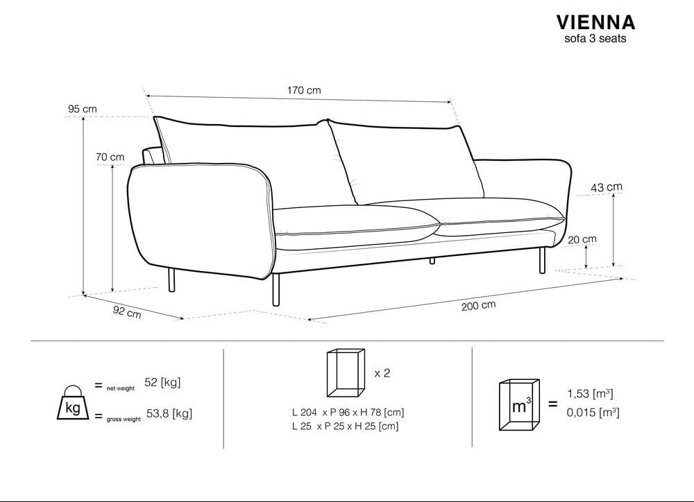 Velvet sofa 3-seater VIENNA light blue with gold base