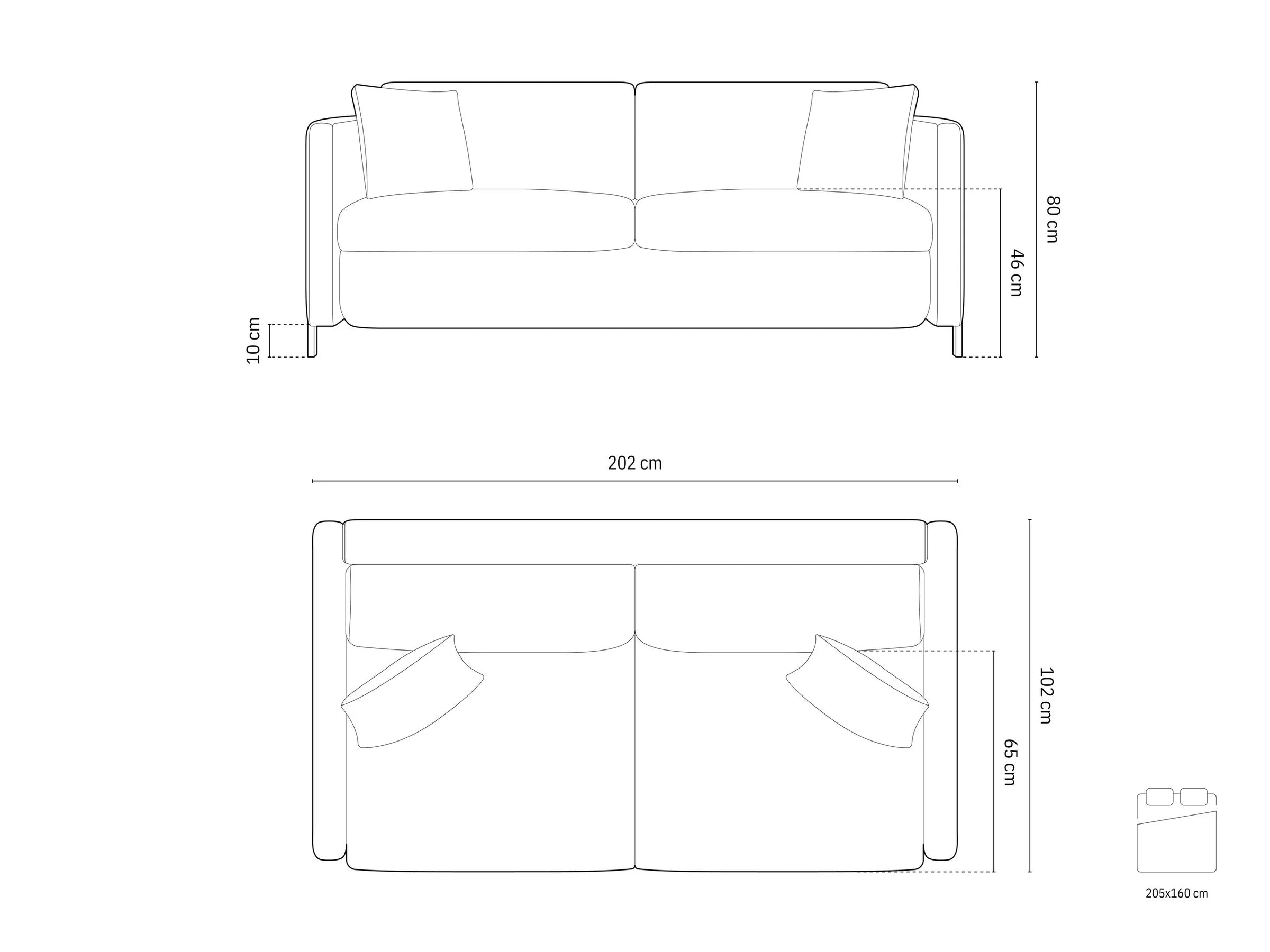 Velvet Sofa with Bed Function, "Gloria", 3 Seats, Chocolate, 202x102x80 Made in Europe