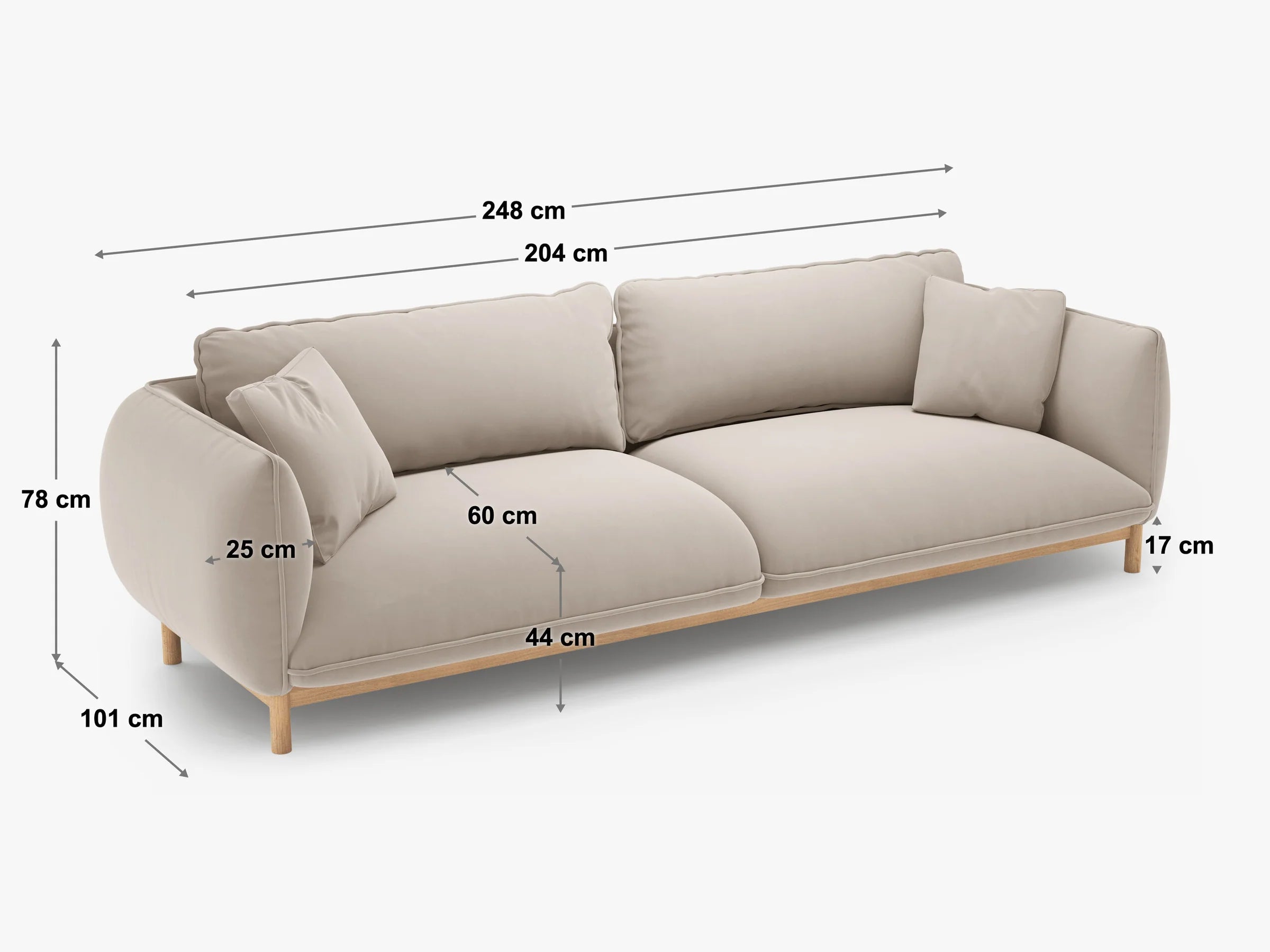 4-person sofa Ada draws inspiration from Scandinavian style, combining elegance with everyday comfort. Its subtle line with rounded armrests and softly padded seat creates a cozy, harmonious form. Thanks to its visually light construction on a wooden frame, the sofa fits perfectly in contemporary interiors — from living rooms to guest spaces.