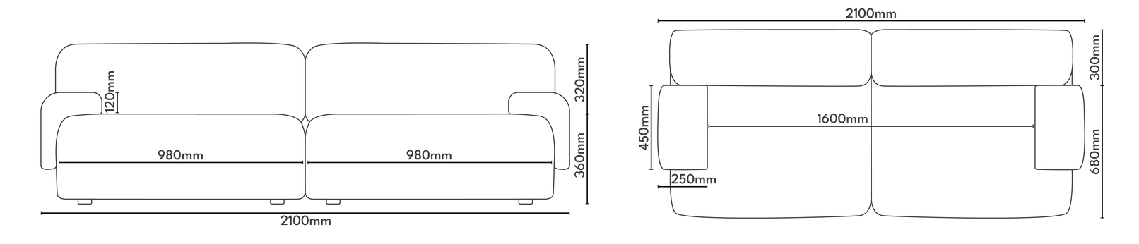 Modular 2-Seater Sofa UMI Beige