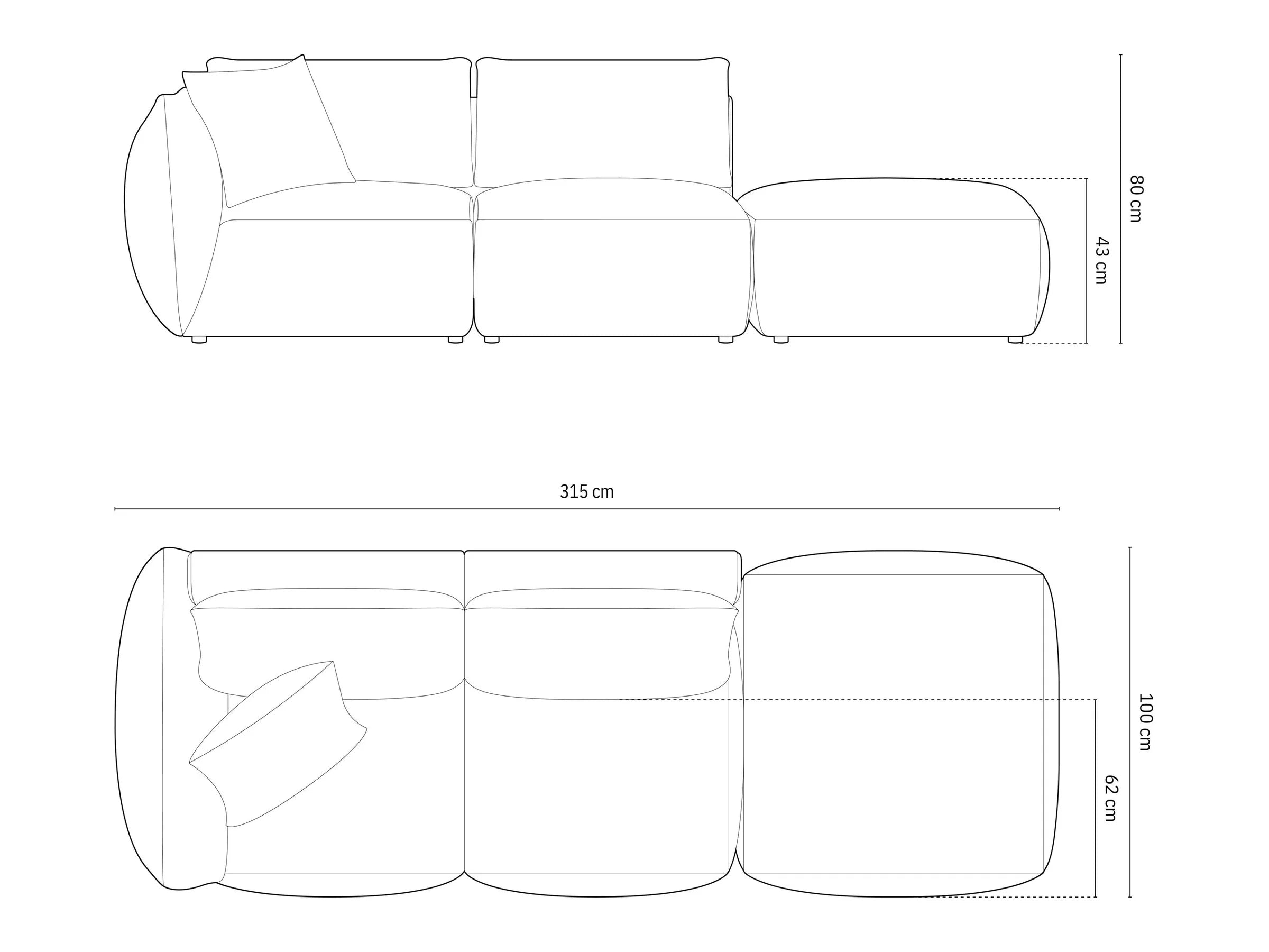 Right-facing 3-seater velvet modular sofa CHRIS light brown