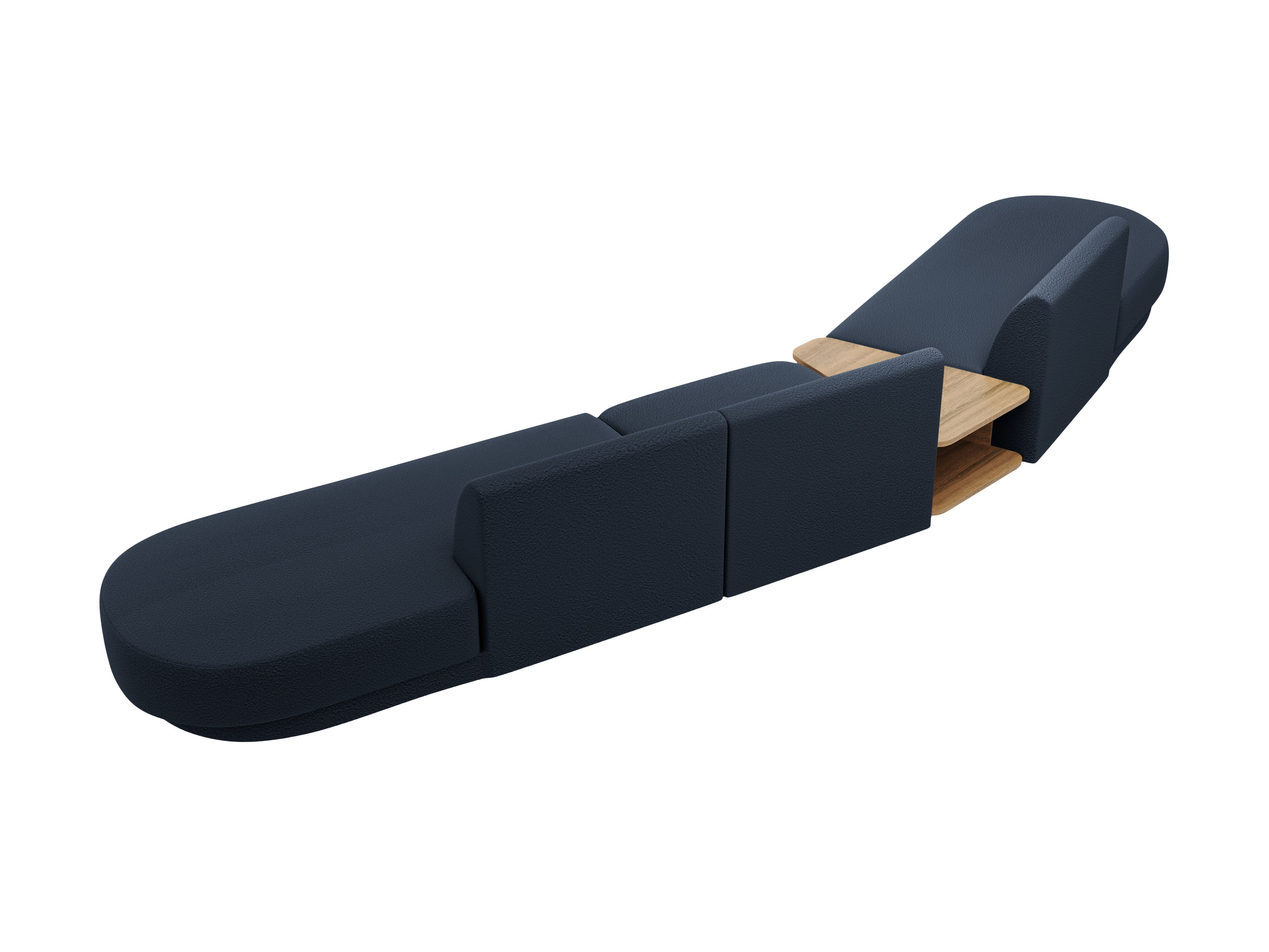 Left-sided modular sofa with table for 5 people MILEY dark blue boucle