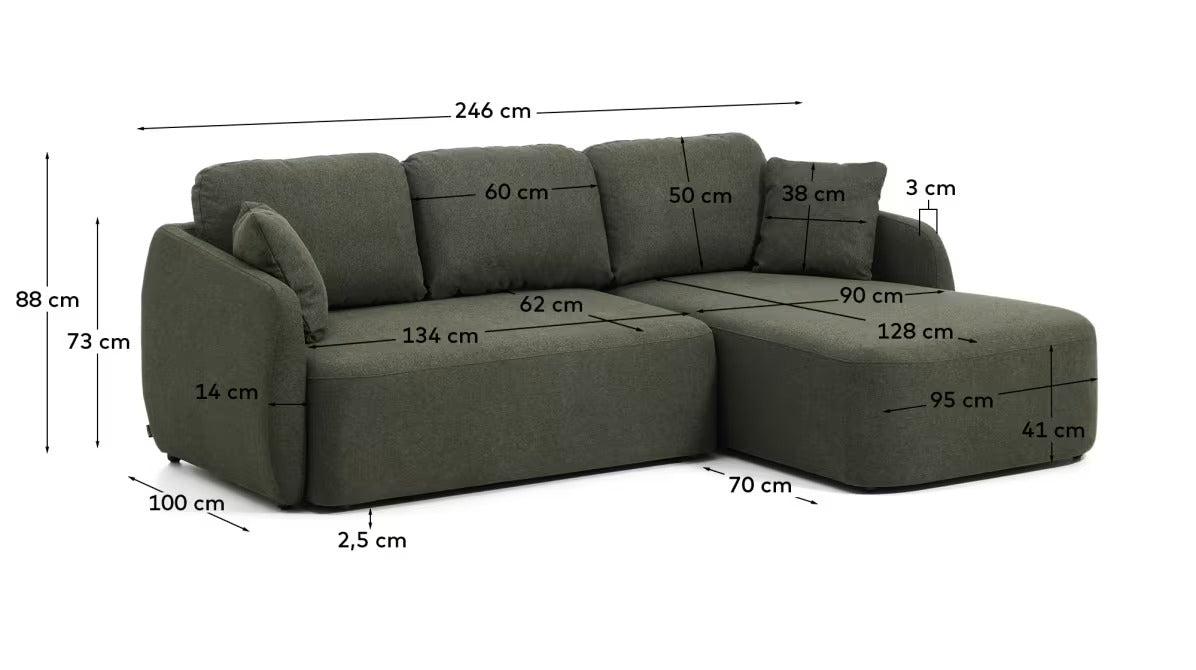 Right-facing 3-seater sofa bed LAIRA dark green