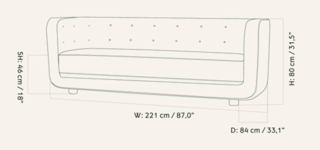 Sofa Vilhelm is an elegant, three-seater sofa designed in 1935 by Flemming Lassen, combining timeless style with exceptional comfort. Its softly rounded shape and subtle tufting of the backrest give it a cozy yet sophisticated character. The inspiration for the design was mid-20th century modernism, which the sofa perfectly embodies through harmonious proportions, attention to detail, and noble materials.