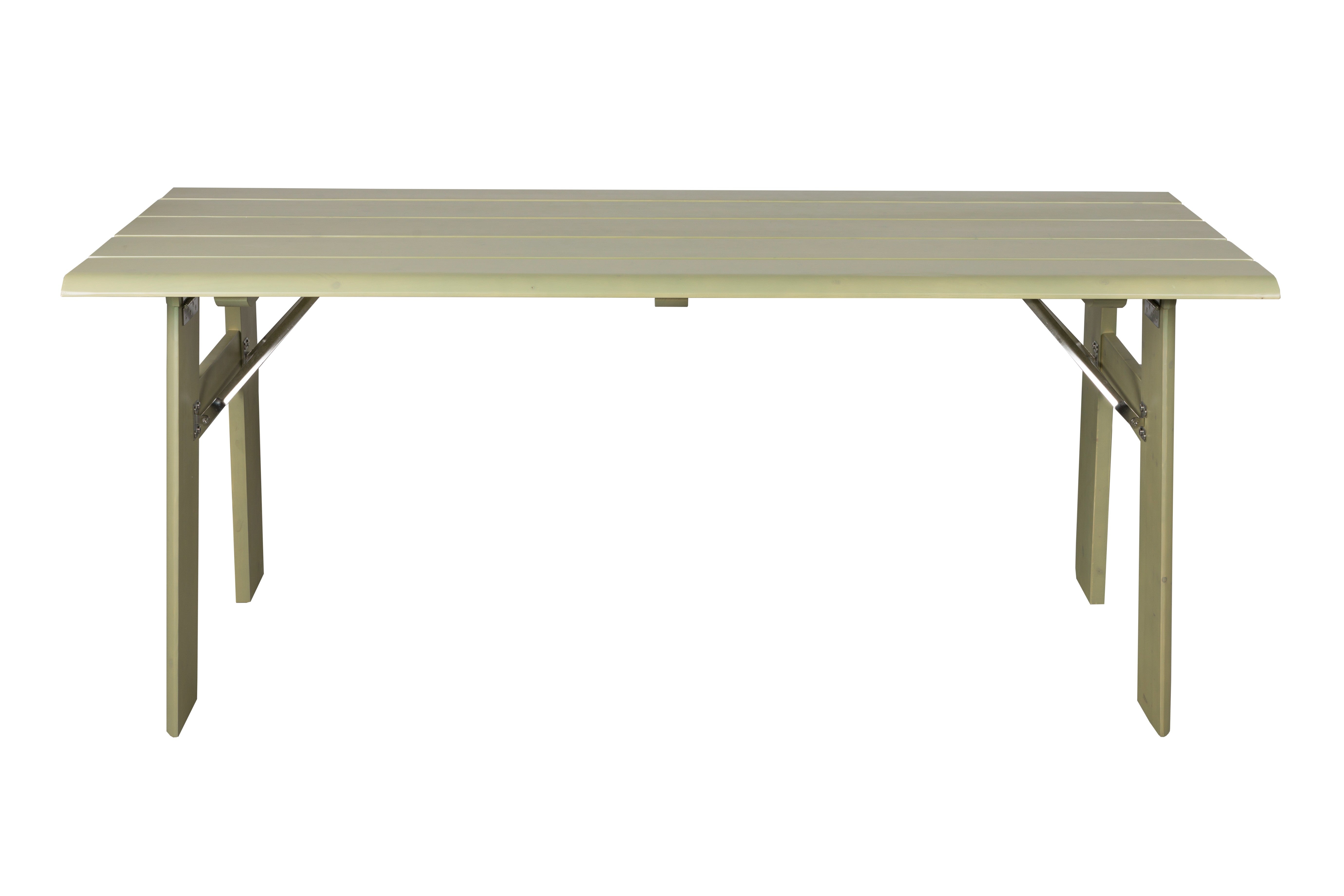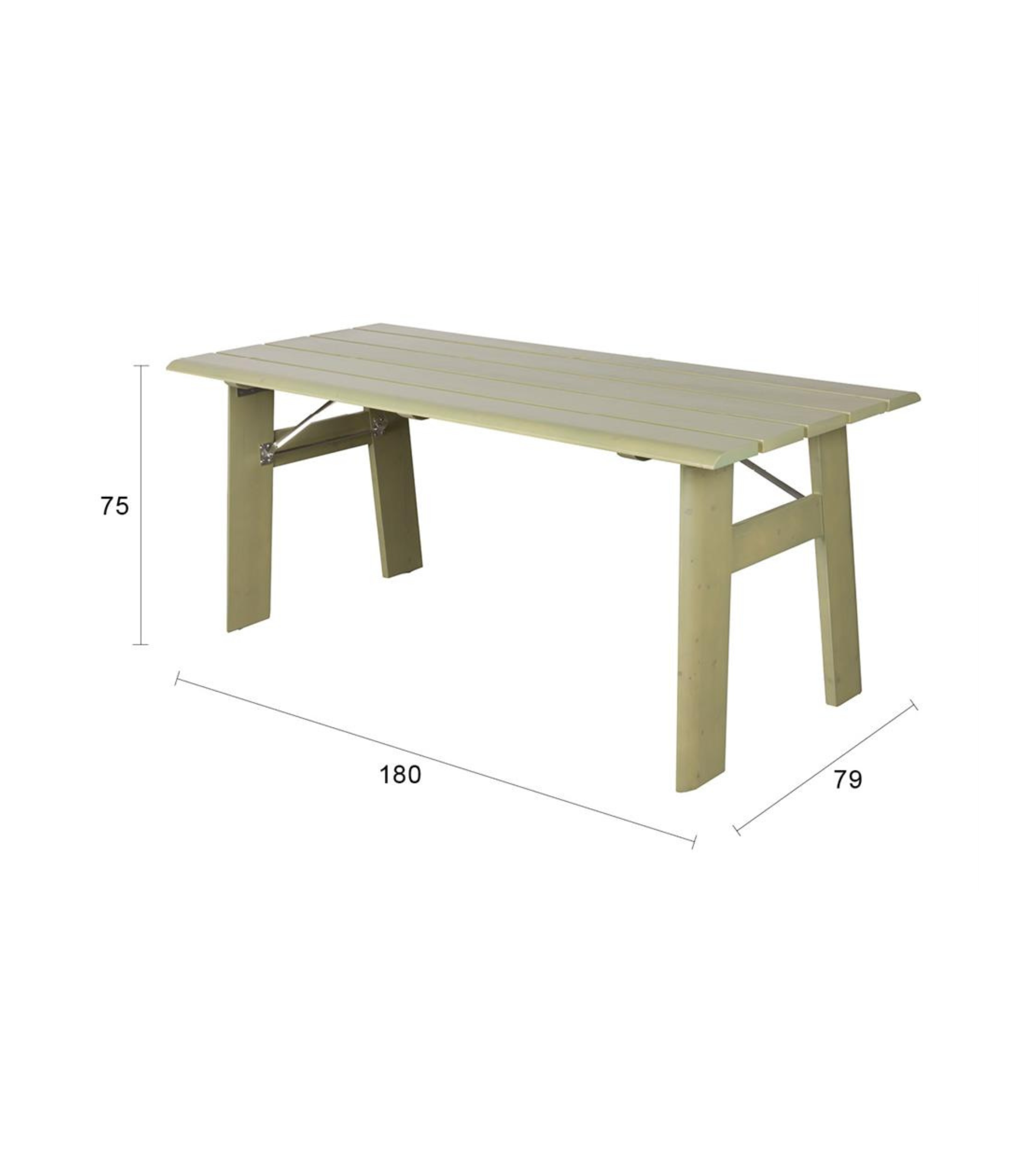 As soon as the first rays of sunshine appear, the Avenue garden table is ready to accompany you in your summer moments of relaxation. With its folding design, you can set it up in the blink of an eye, and in case of sudden rain, you can just as quickly fold it away and store it. The green color of the wood gives the table a fresh and natural look that perfectly complements the garden surroundings. The rounded edges not only add elegance but also enhance user comfort.