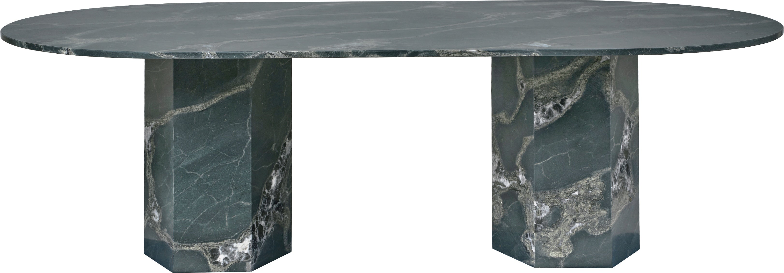 Epic Table is a unique design by the duo GamFratesi, bringing a monumental aesthetic inspired by the architecture of ancient Greece and Rome into outdoor spaces. The garden version, made from natural Botanic Green quartzite, captivates with its sculptural silhouette and exceptional texture. Each table is unique – the characteristic veining, dark green hue with hints of black, and sparkling quartz crystals create a natural work of functional art.