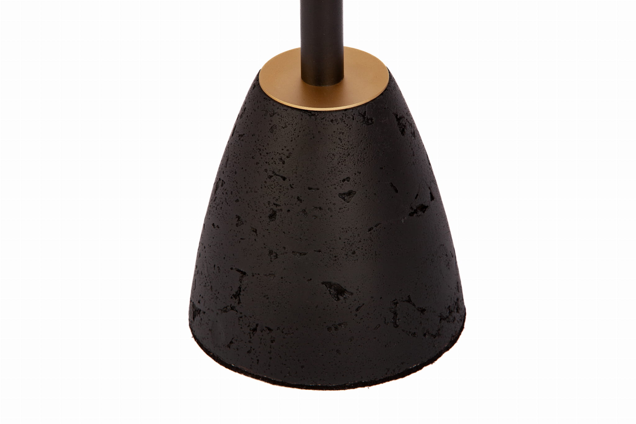 Elegant coffee table Concri is a combination of modern design and exceptional functionality. The triangular top with rounded corners, made of durable HPL laminate in matte black, gives the whole piece a unique elegance. The entire structure is supported by a slender, powder-coated metal leg in a fine texture, while the stable concrete base with a golden accent at the joint adds a luxurious character to the furniture.
