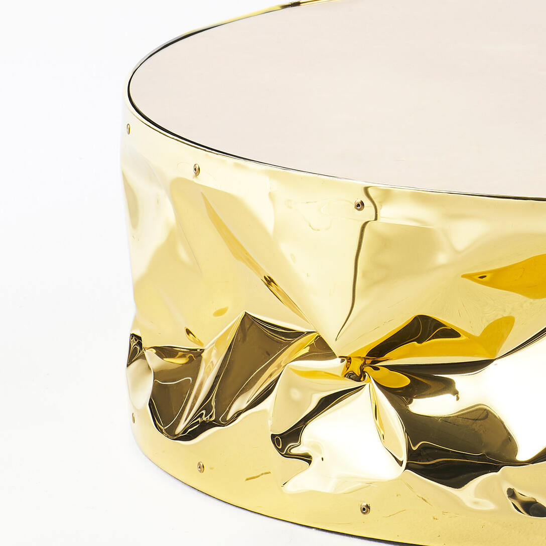 Tab.Ulone is an eye-catching coffee table on wheels, designed by Bruno Rainaldi, which combines a raw form with a refined finish. The distinctive, hand-crumpled aluminum surface paired with a mirrored top creates a unique light effect that draws the eye and adds elegance to any interior. It is perfectly suited for both a modern living room and a classic interior, where it will become a subtle yet striking accent.