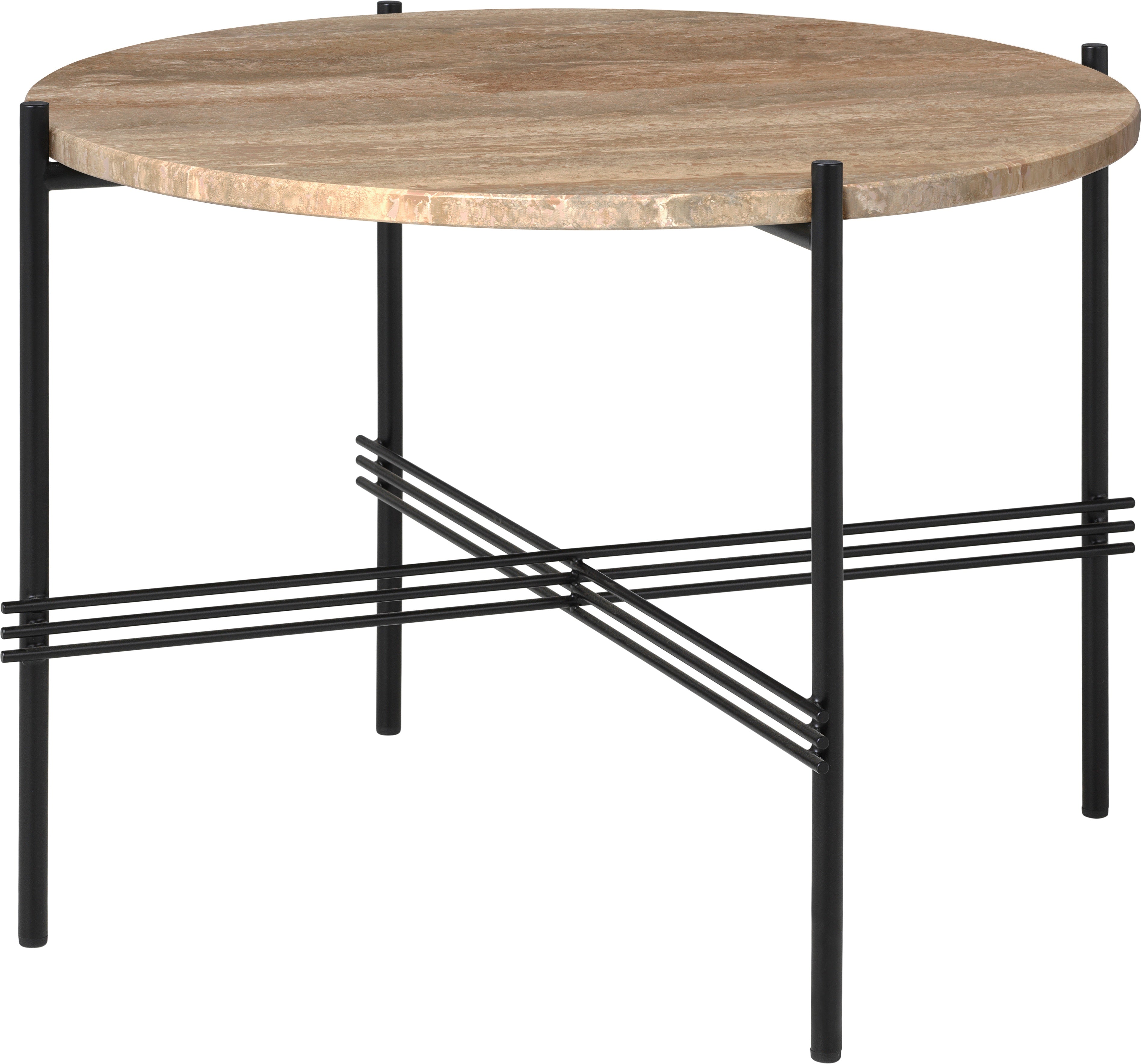 Round coffee table TS sandy travertine with black base