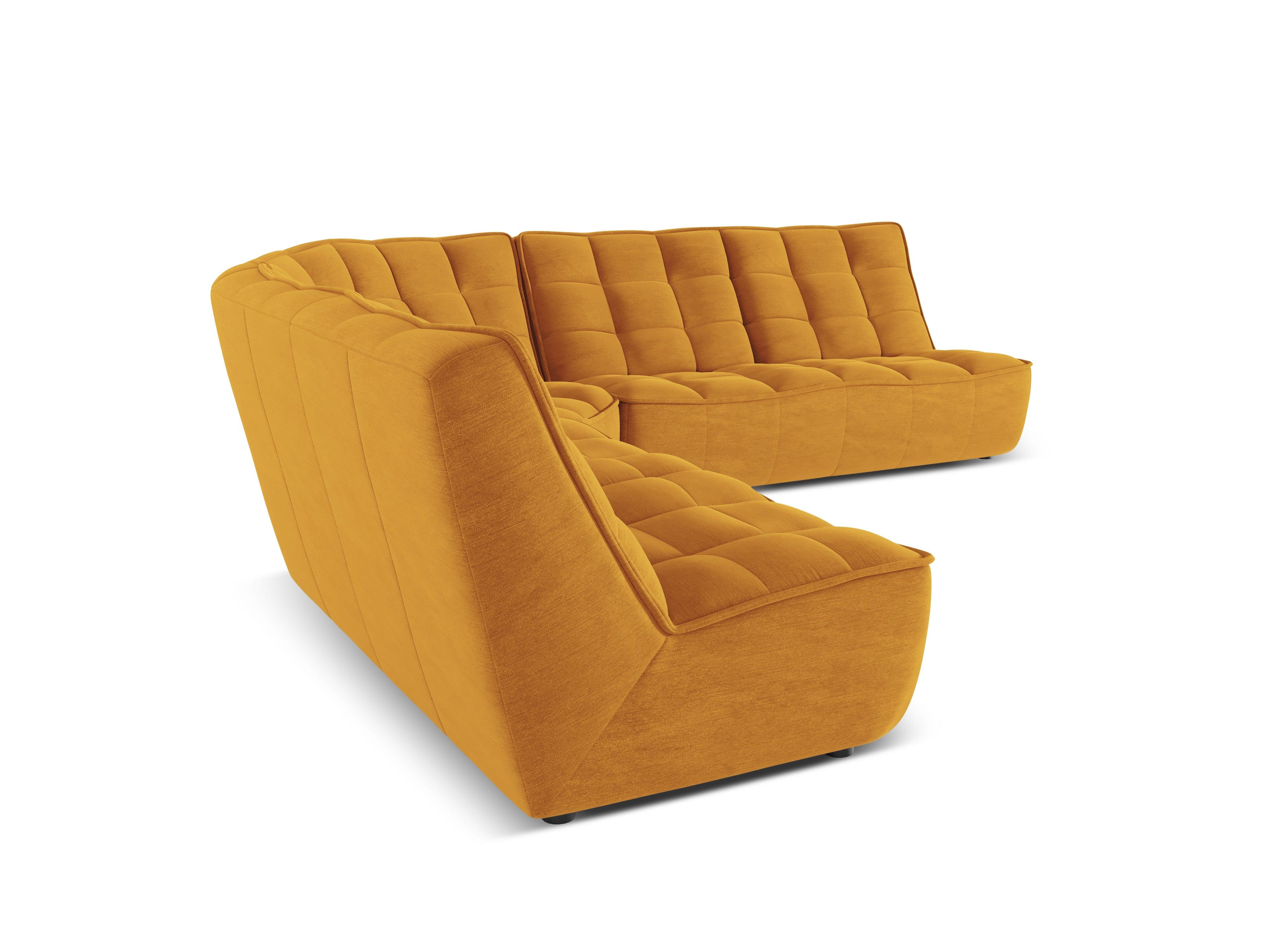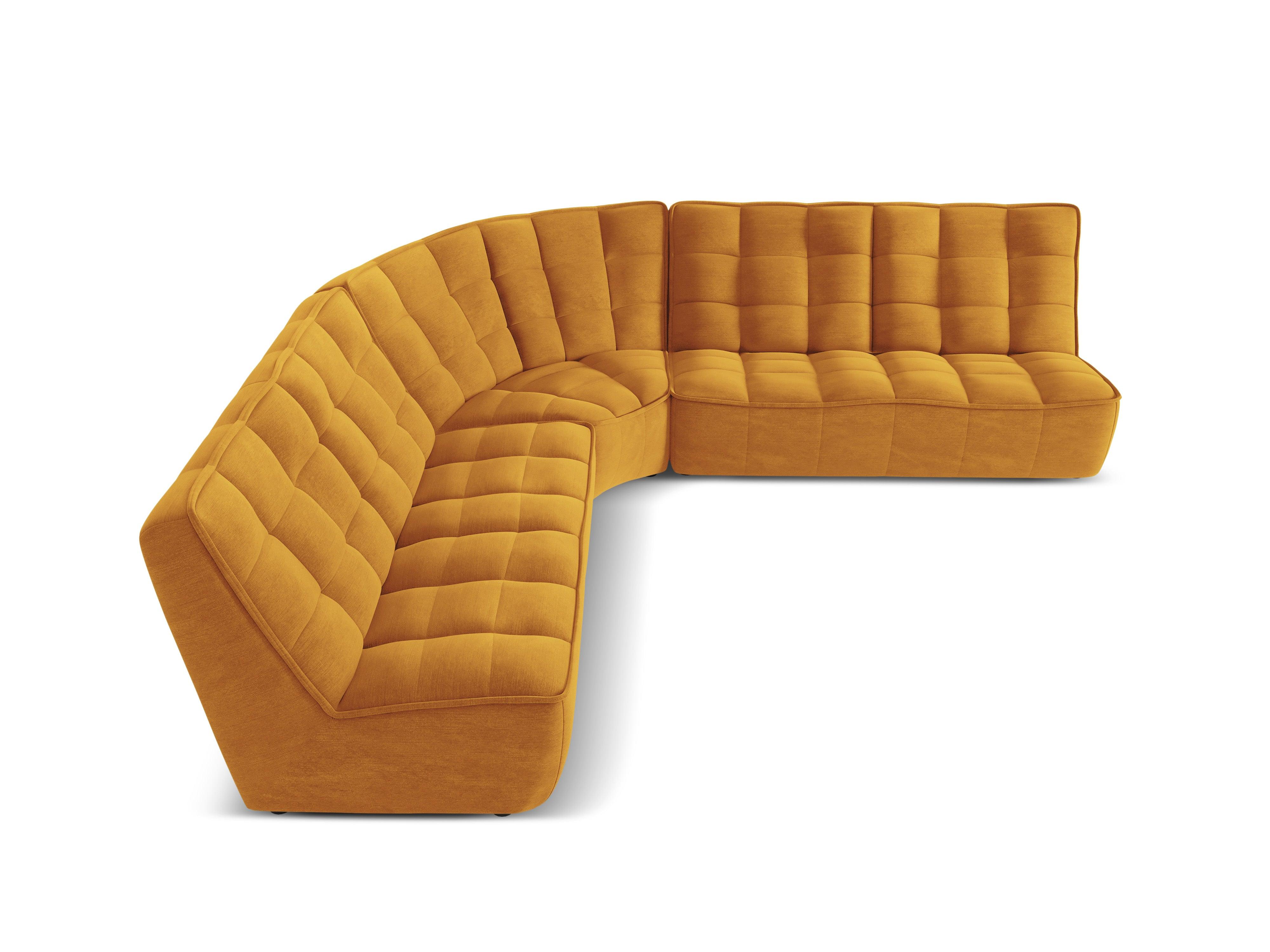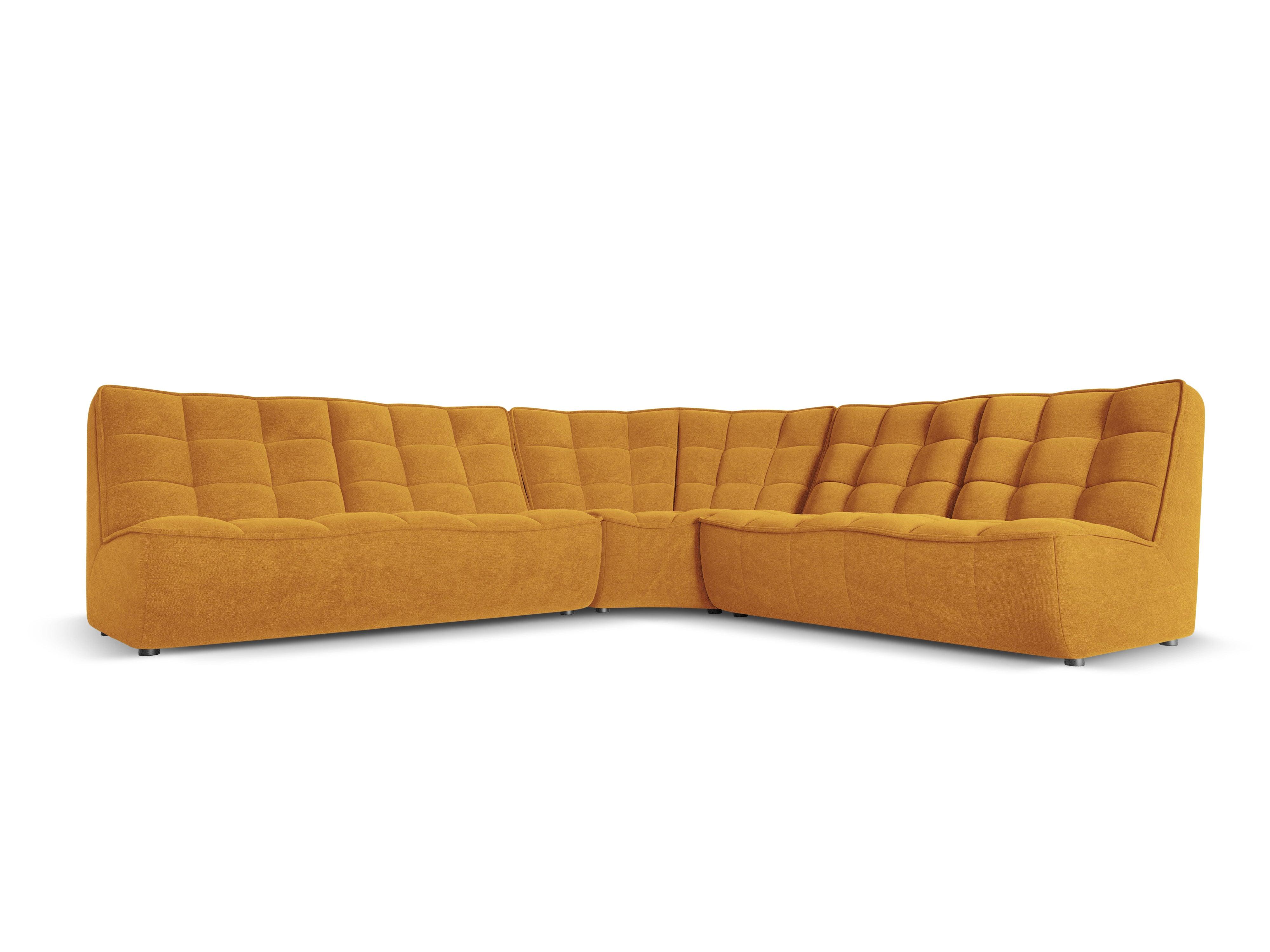 Upholstery made of structural fabric, whose finely woven structure resembles velvet with a heterogeneous surface, is pleasant to the touch and extremely durable. Ergonomic shapes ensure free support. The Moni collection includes several combinations of sofas and corners, as well as elements such as chaise and poufs.
