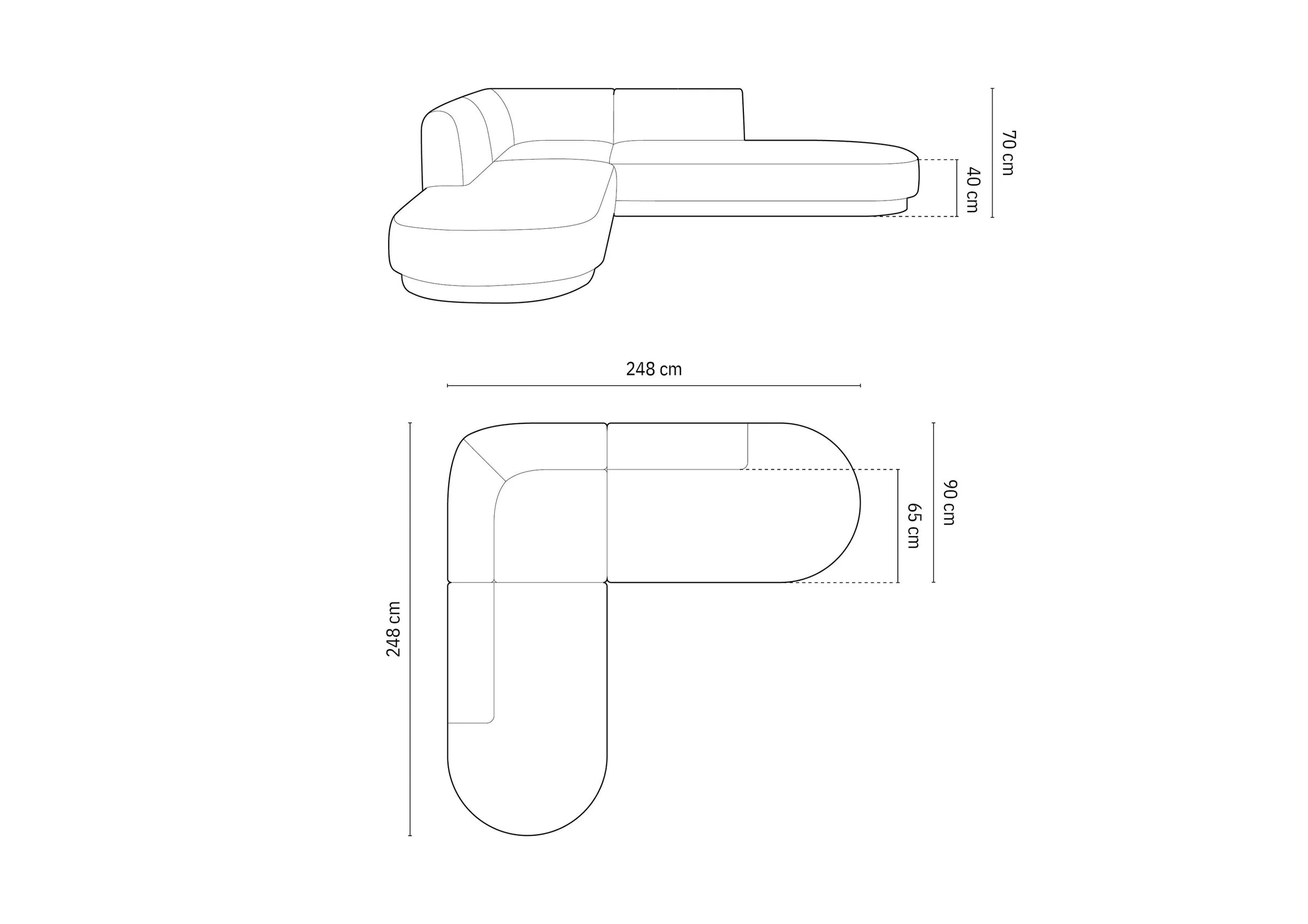 Symmetrical Open Corner Sofa MILEY Black Chenille Silk