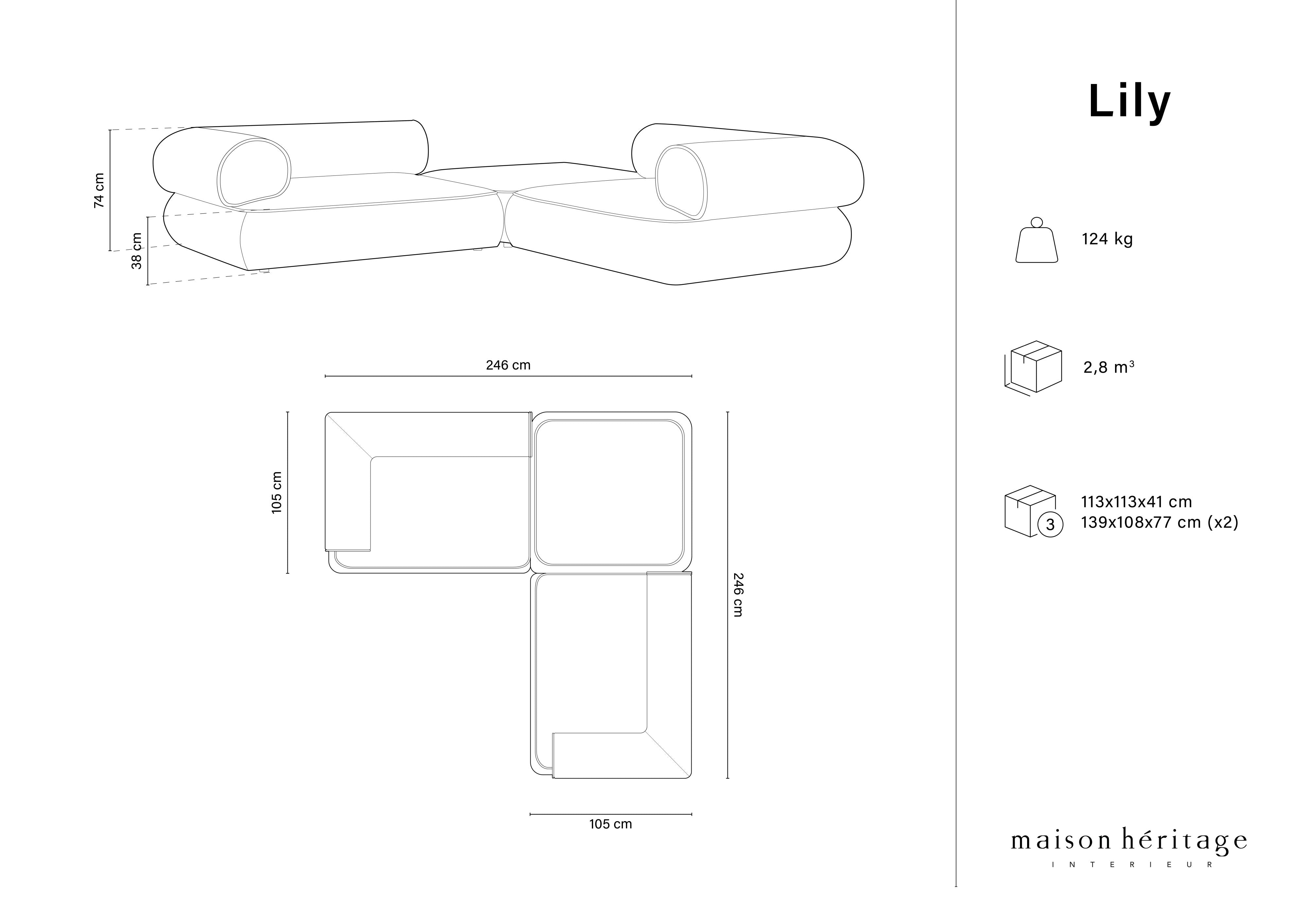 Narożnik w tkaninie szenilowej symetryczny otwarty LILY jasnobeżowy Maison Heritage    Eye on Design