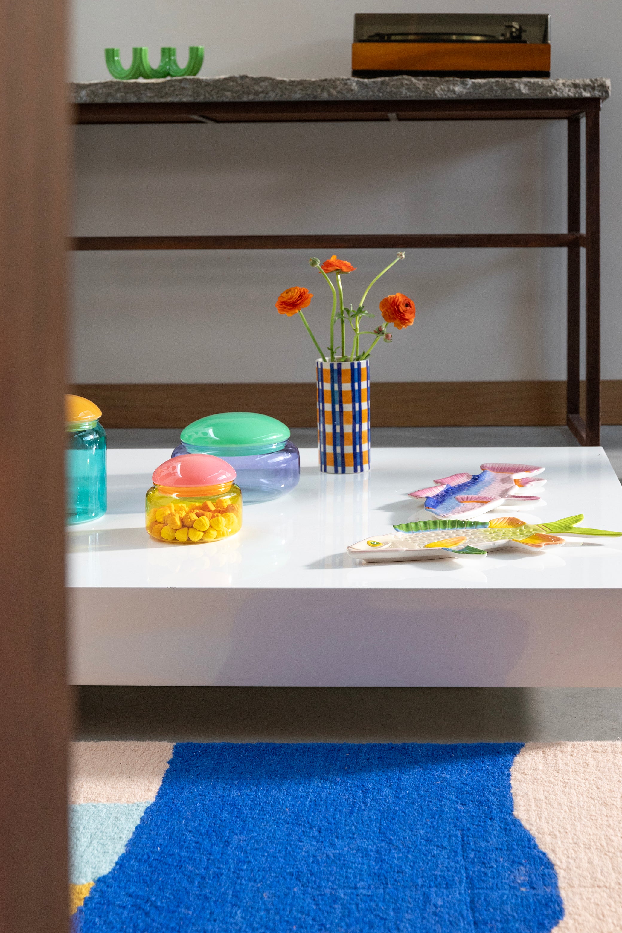 Pink Fish Perch Plate with Blue