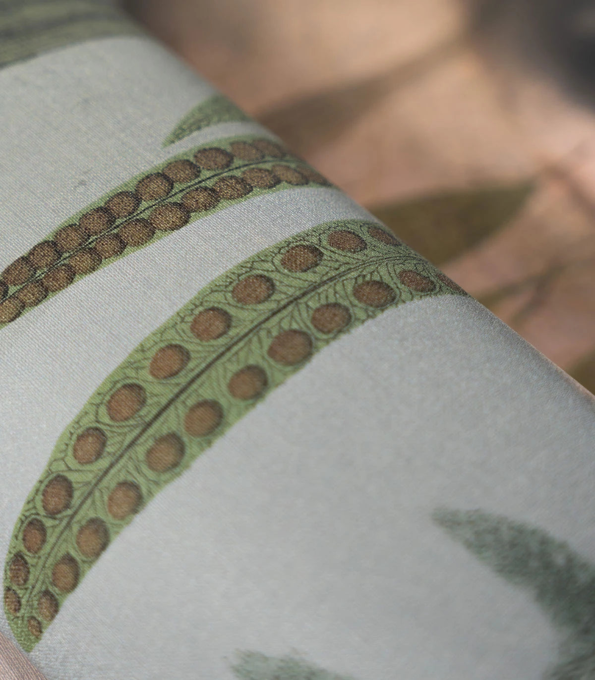 Wallpaper with the artistic portrait NATURE GIRL WITH THE PEARL beige with green