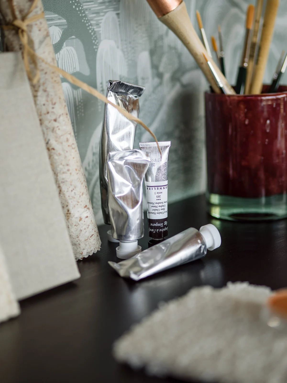Indigo Garden Wallpaper with a hand-painted pattern brings timeless charm to your interior, captivating from the very first glance. The background of the wallpaper has a calm, watery appearance that perfectly contrasts with the rich, vibrant botanical design. The intricate yet harmonious pattern, full of details, creates a space filled with cozy elegance and tranquility.