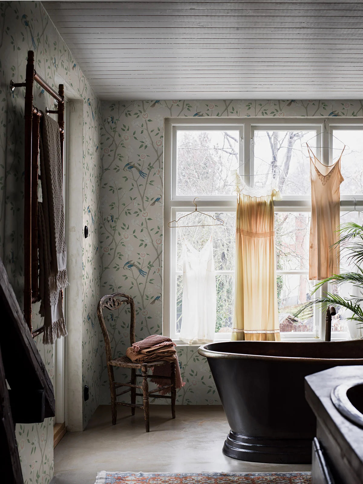 Non-woven paper wallpaper with a botanical pattern PARADISE BIRDS beige with green and pink