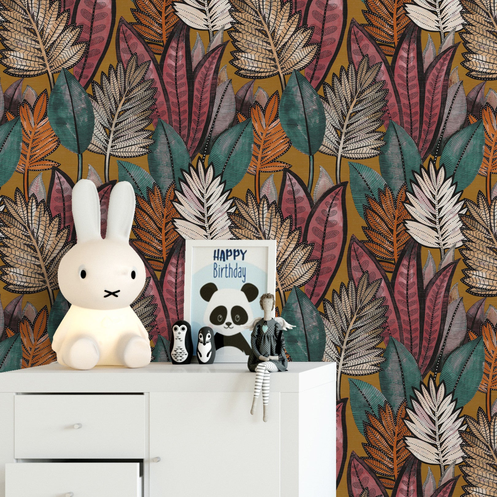 SABAL Structural Wallpaper with Plant Motif - SAFFRON