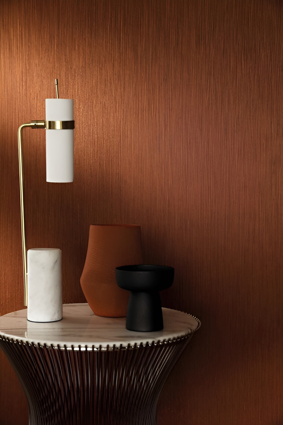 Mango wood + travertine, lacquered finish