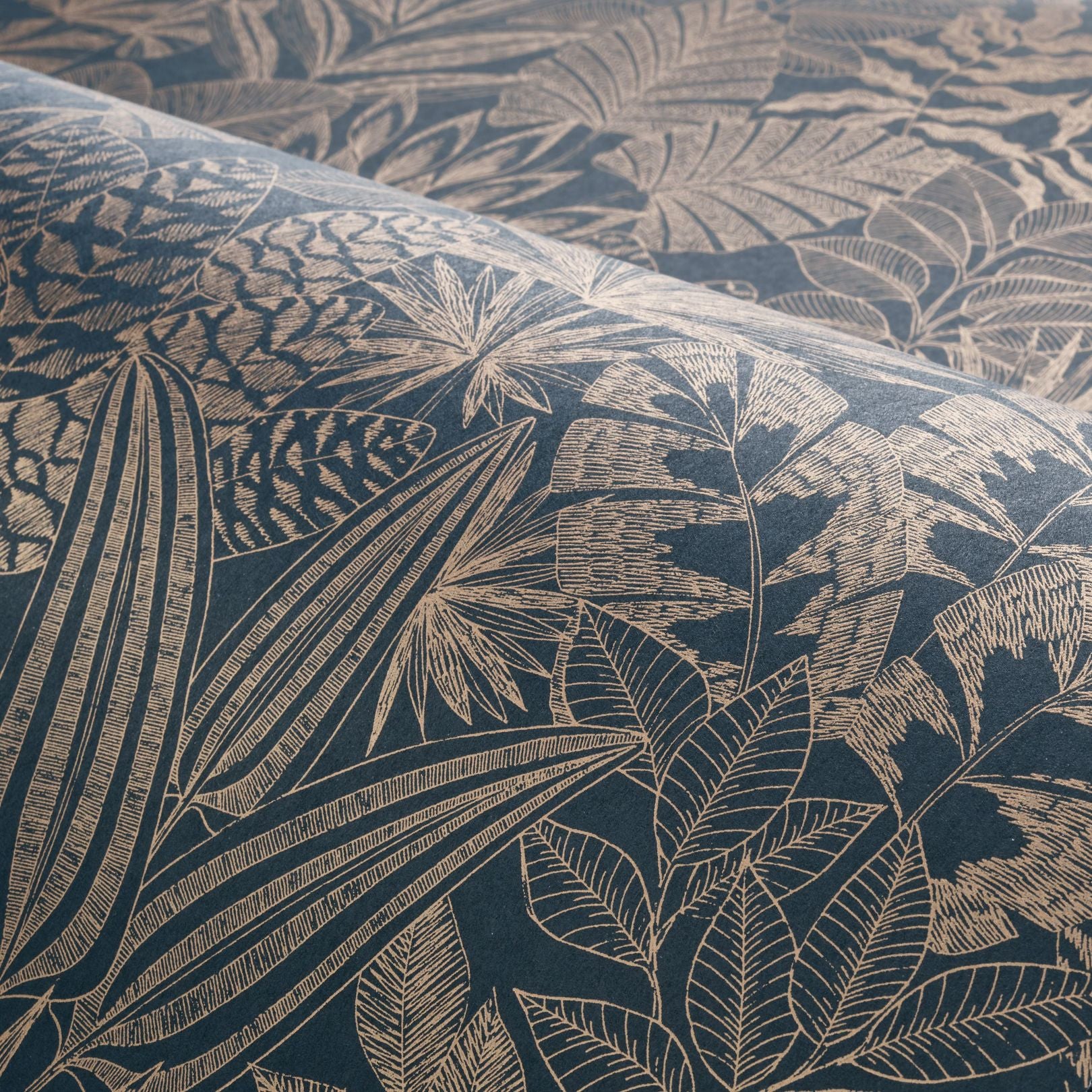 Floral Pattern Wallpaper DOUM - EMARINE/DORE Navy with Gold