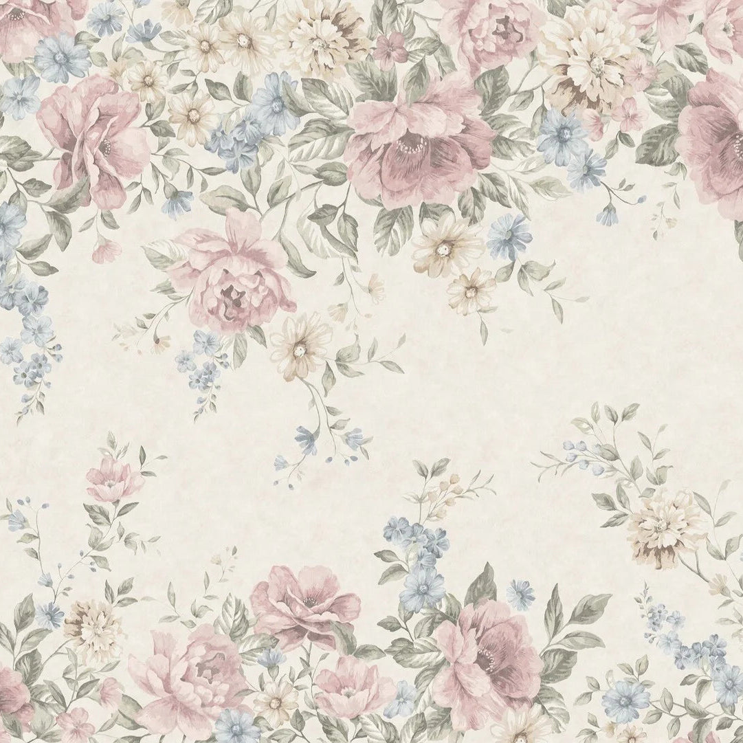 Poppy Flow Floral Pattern Wallpaper in Warm Beige with Pink