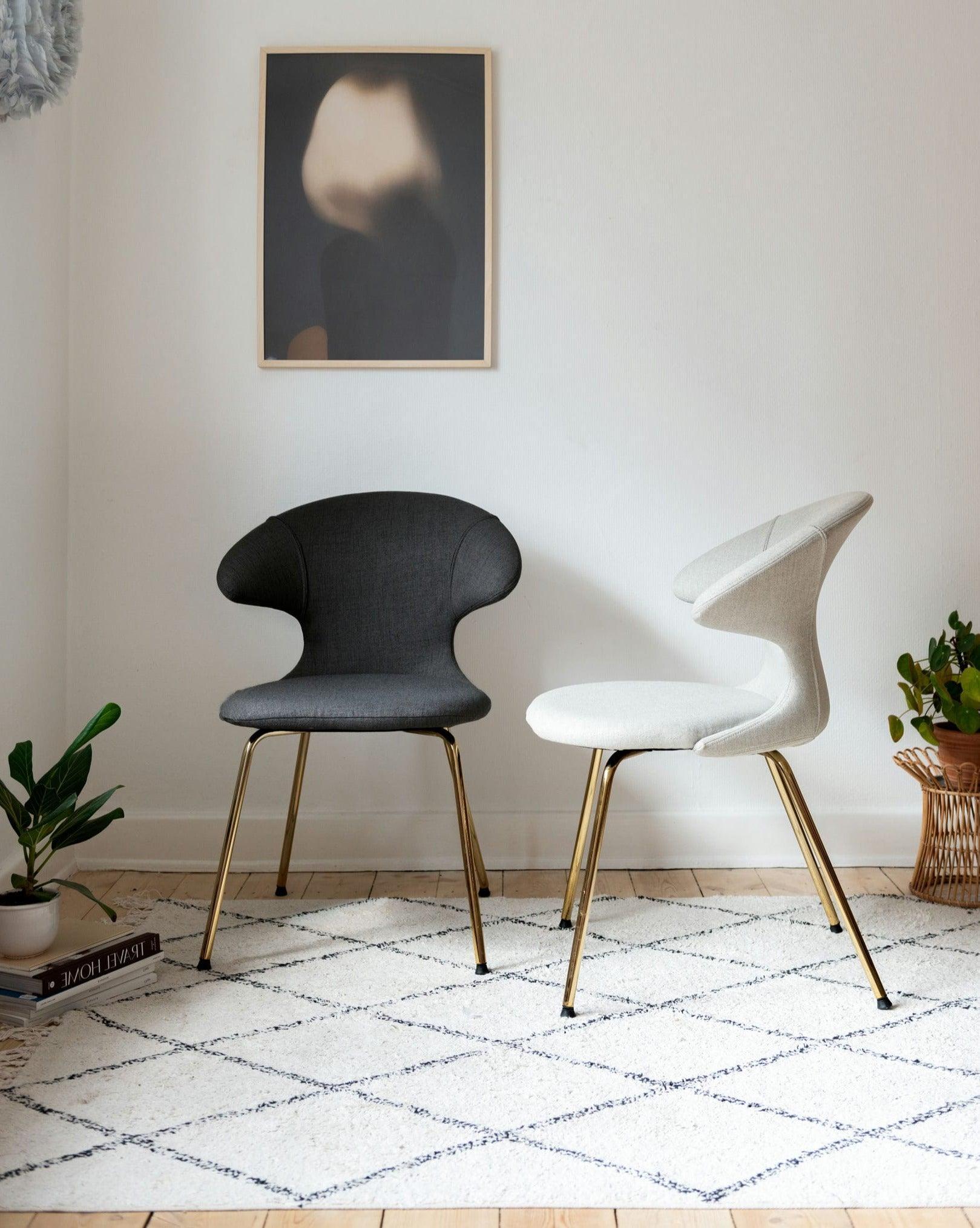 Chair It is available in 17 carefully selected colors of Horizons fabric, which is 100% recycled or in 2 fabrics from the Teddy collection. In addition, leg options include brass, chrome or black finishes, which allows you to match the chair to different interior styles. This combination of aesthetics, functionality and a balanced approach to materials makes Time Flies a unique and lasting proposition.