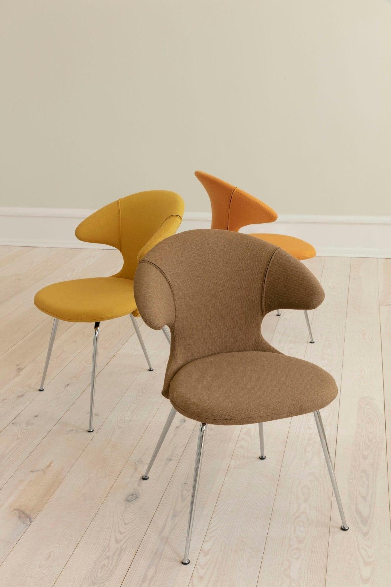 Chair It is available in 17 carefully selected colors of Horizons fabric, which is 100% recycled or in 2 fabrics from the Teddy collection. In addition, leg options include brass, chrome or black finishes, which allows you to match the chair to different interior styles. This combination of aesthetics, functionality and a balanced approach to materials makes Time Flies a unique and lasting proposition.