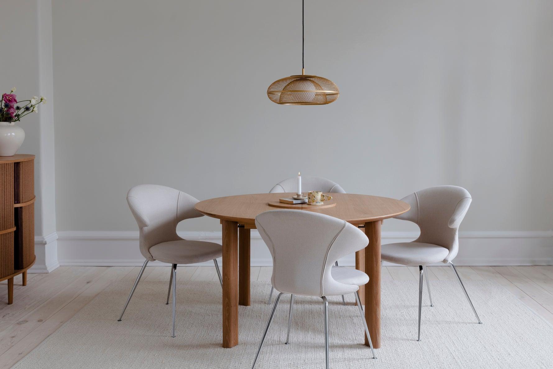 Chair It is available in 17 carefully selected colors of Horizons fabric, which is 100% recycled or in 2 fabrics from the Teddy collection. In addition, leg options include brass, chrome or black finishes, which allows you to match the chair to different interior styles. This combination of aesthetics, functionality and a balanced approach to materials makes Time Flies a unique and lasting proposition.