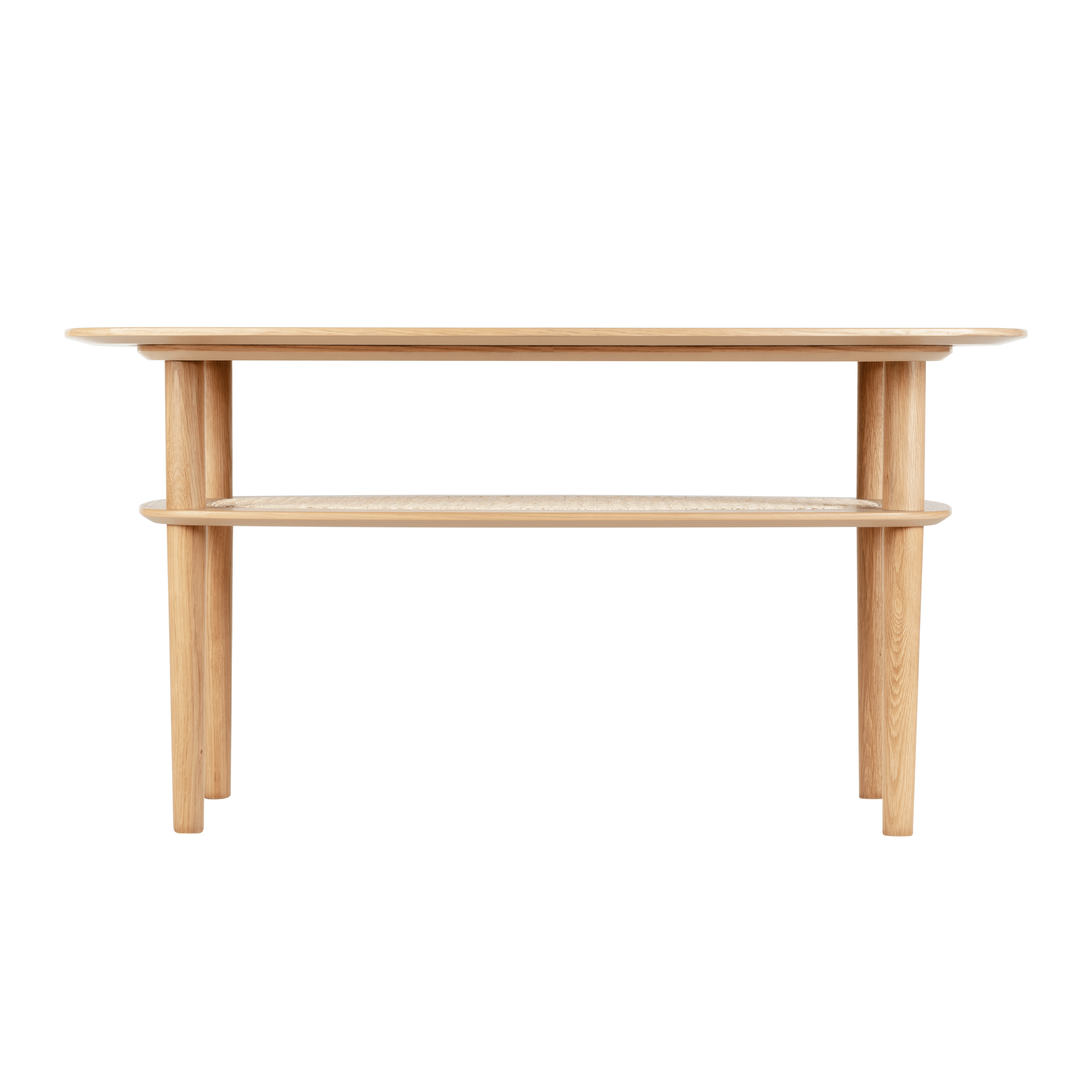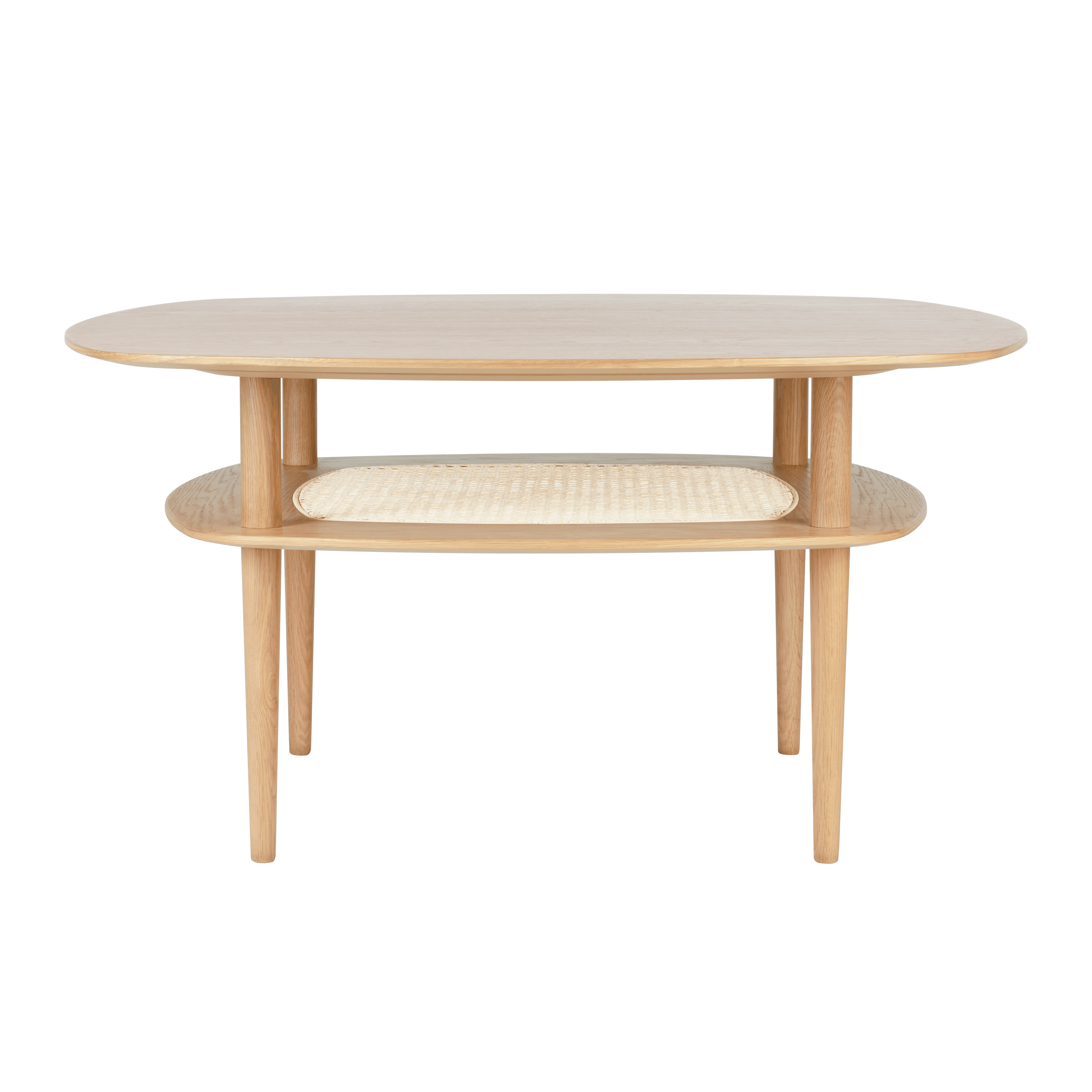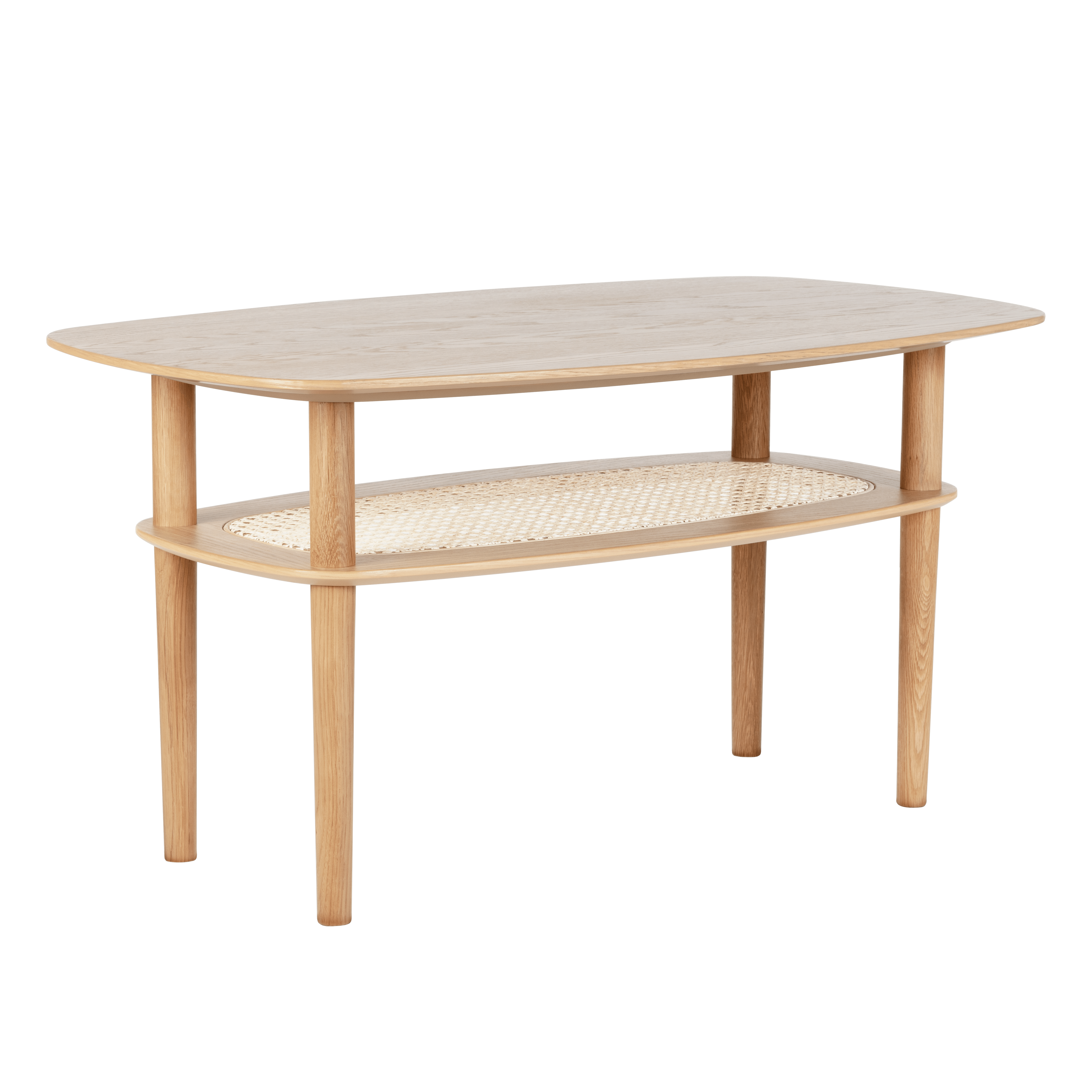 Coffee table Together was made of solid oak wood, varied with a shelf made of Venetian reed, which gives the project lightness. Rounded table corners give it elegance and make him look spacious. The table legs were intentionally withdrawn from the edge of the countertop, with a view to the safety of children and to protect the fingers.