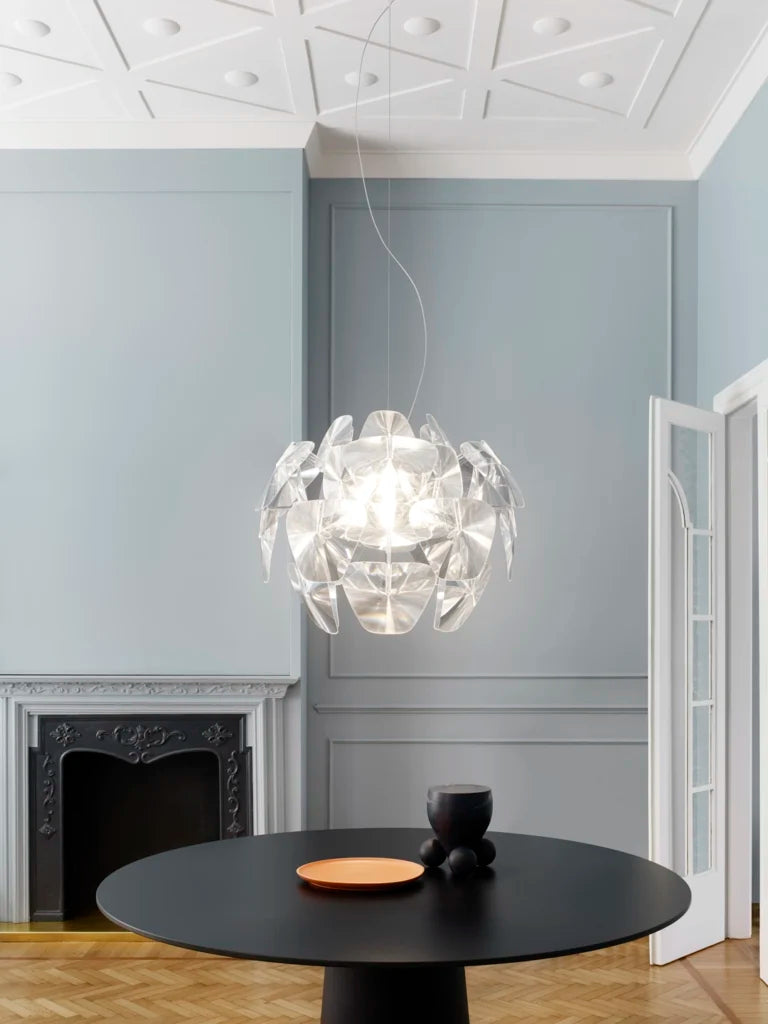 The Hope project was created by Francisco Goméz Paz and Paolo Rizzatto for the Luceplan brand with a view to the maximum use of the effect of reflection and dispersion of light. Polycarbonate flakes, which consist of a lampshade, create a light but effective design, perfectly fitting into modern interiors. Thanks to the modular structure lamp It is extremely easy to install and disassemble, which further emphasizes its functionality and innovative character.