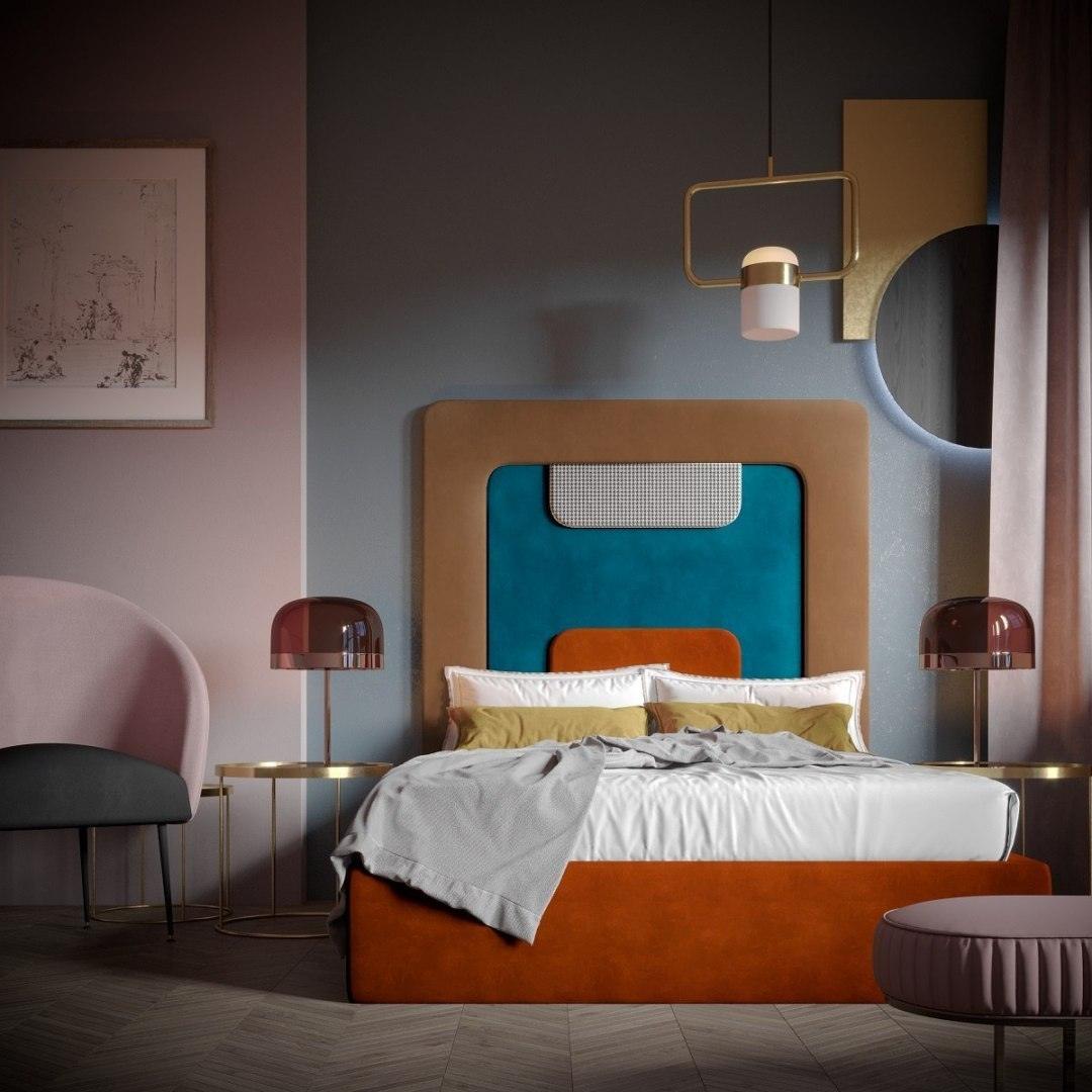 Łóżko tapicerowane PLUM beżowy z niebieskim Happy Barok    Eye on Design