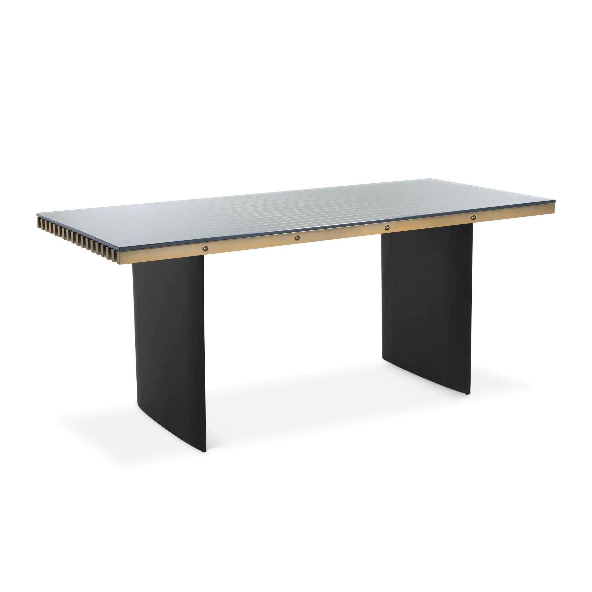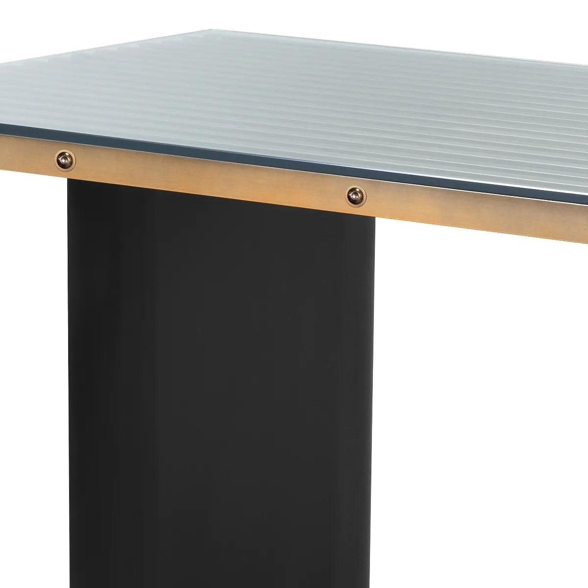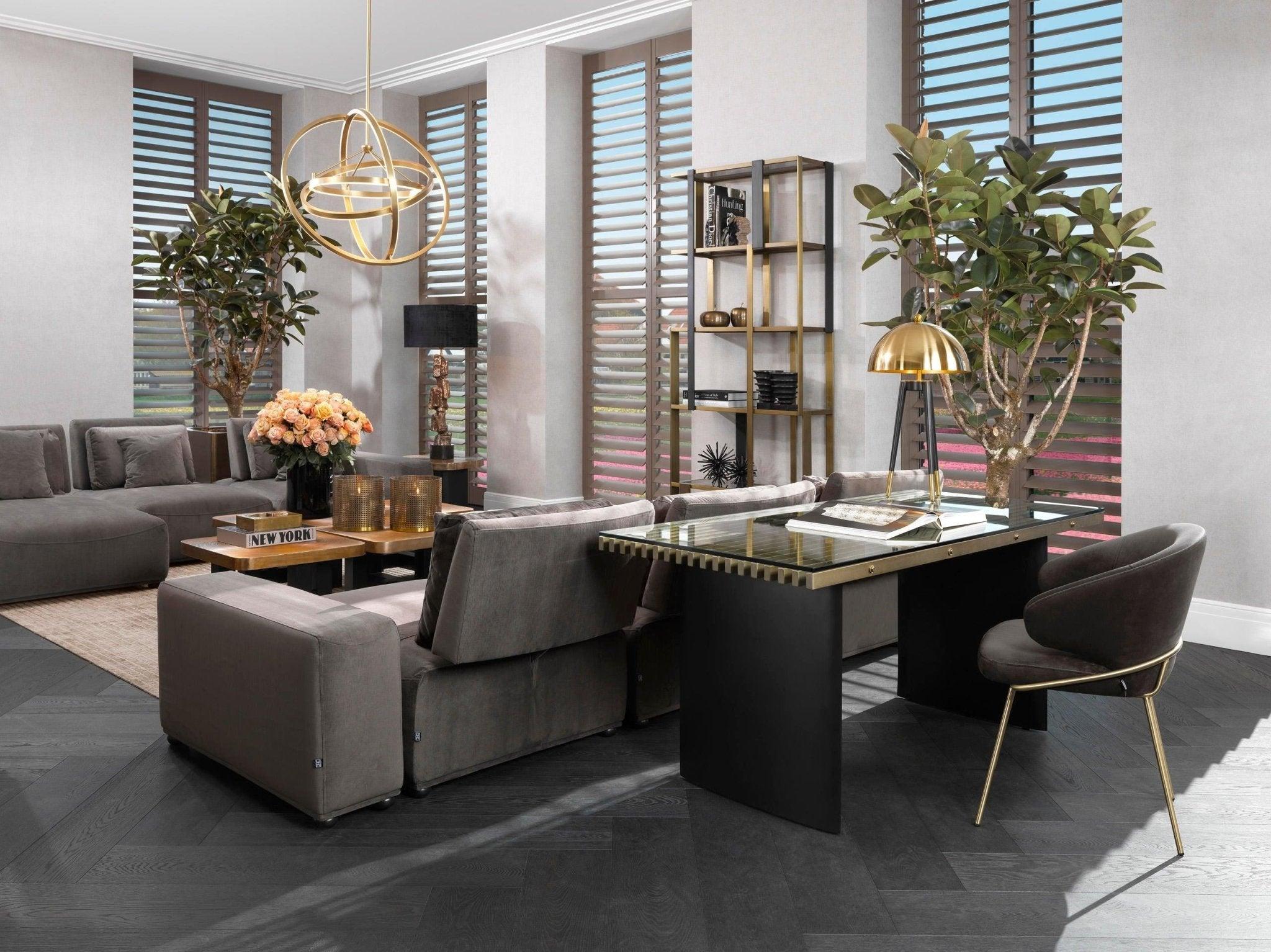 Desk Vauclair is a real masterpiece of design that impresses with its uniqueness and elegance. Its thick, transparent glass top adds lightness and modernity, while the metal grille with a brushed brass finish introduces a note of industrial character. A solid basis guarantees stability and durability, making black desk Vauclair not only a beautiful but also practical choice.