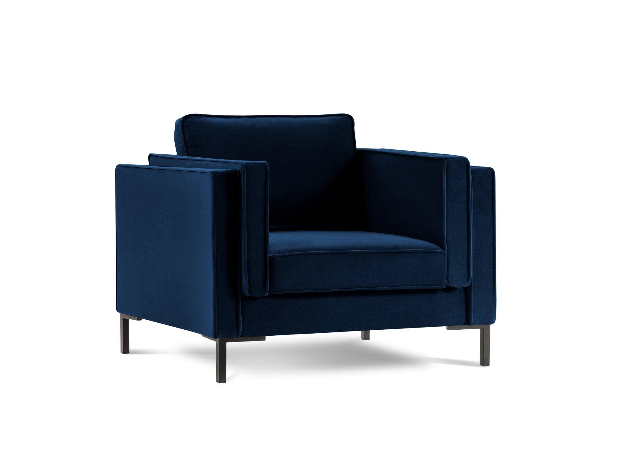 Fotel aksamitny LUIS granat królewski z czarną podstawą Milo Casa    Eye on Design
