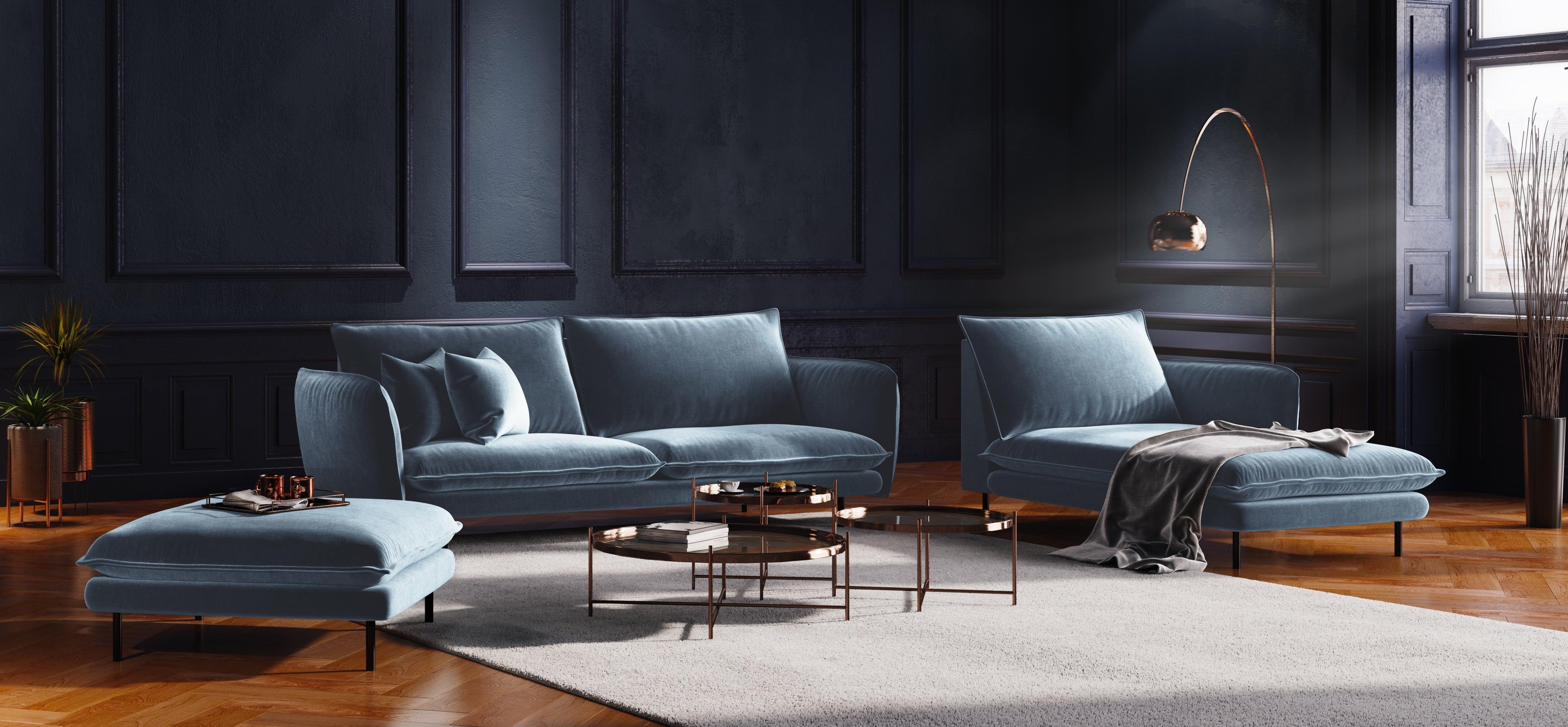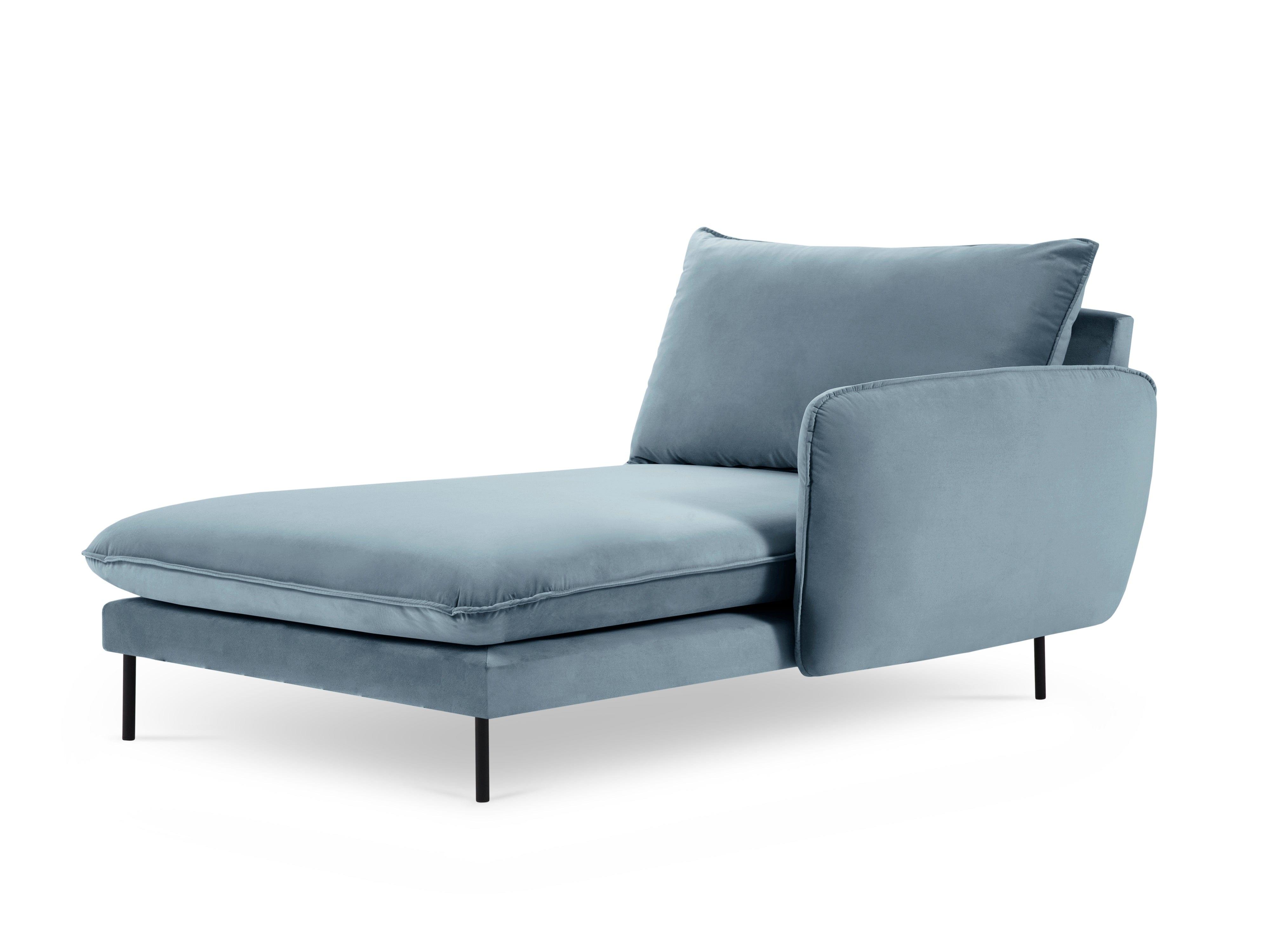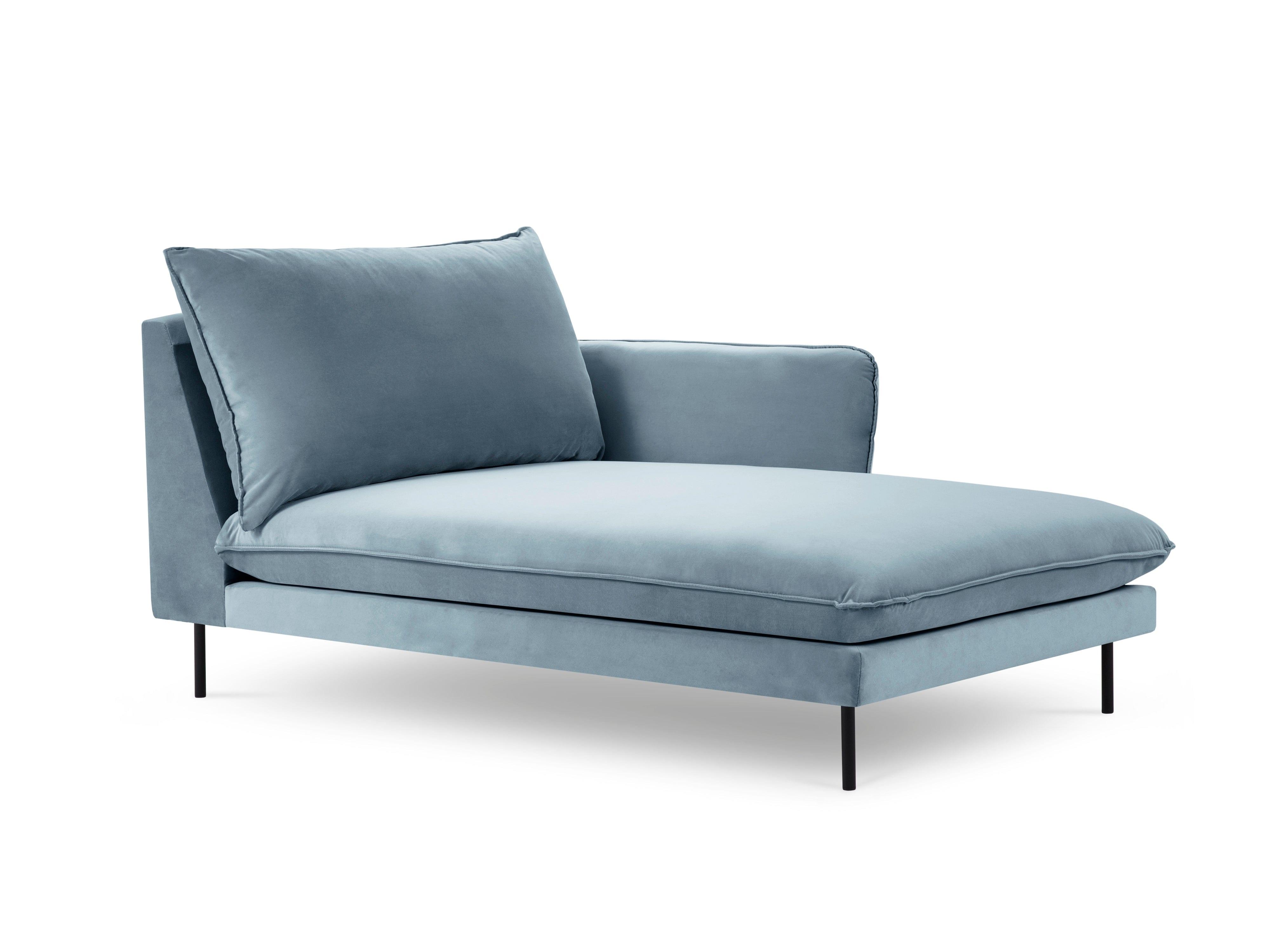 Szezlong aksamitny prawostronny VIENNA jasnoniebieski z czarną podstawą Cosmopolitan Design    Eye on Design