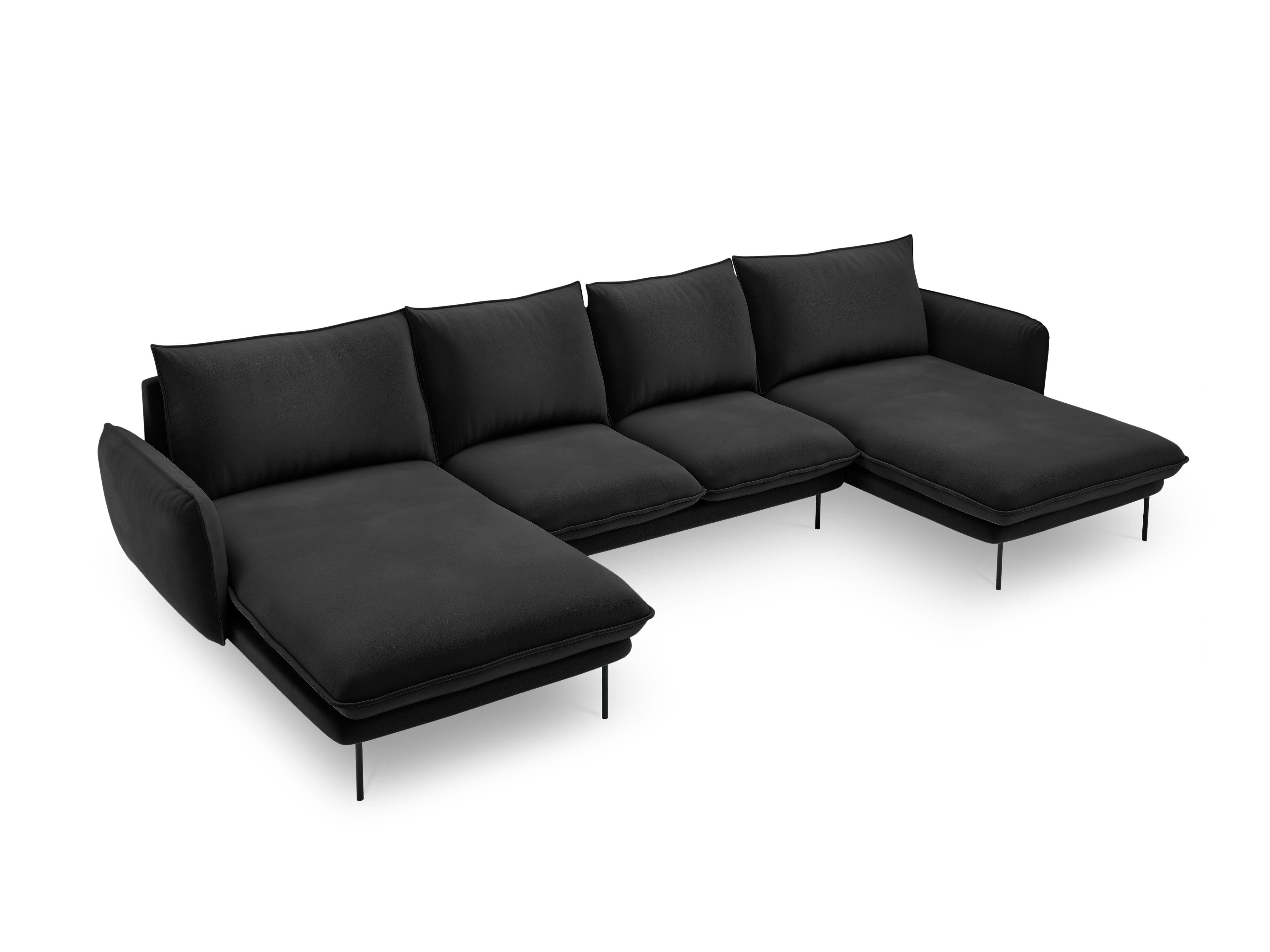 Narożnik w kształcie U Vienna wyróżniają piękne proporcje i harmonijne kształty. Narożnik do salonu jest nie tylko wygodny, ale też wprowadzi do wnętrza nutę paryskiego szyku i elegancji. Subtelna forma i miękkie siedzisko zapewnią niezwykły komfort użytkowania. Metalowe nogi nadają całej formie lekkości.