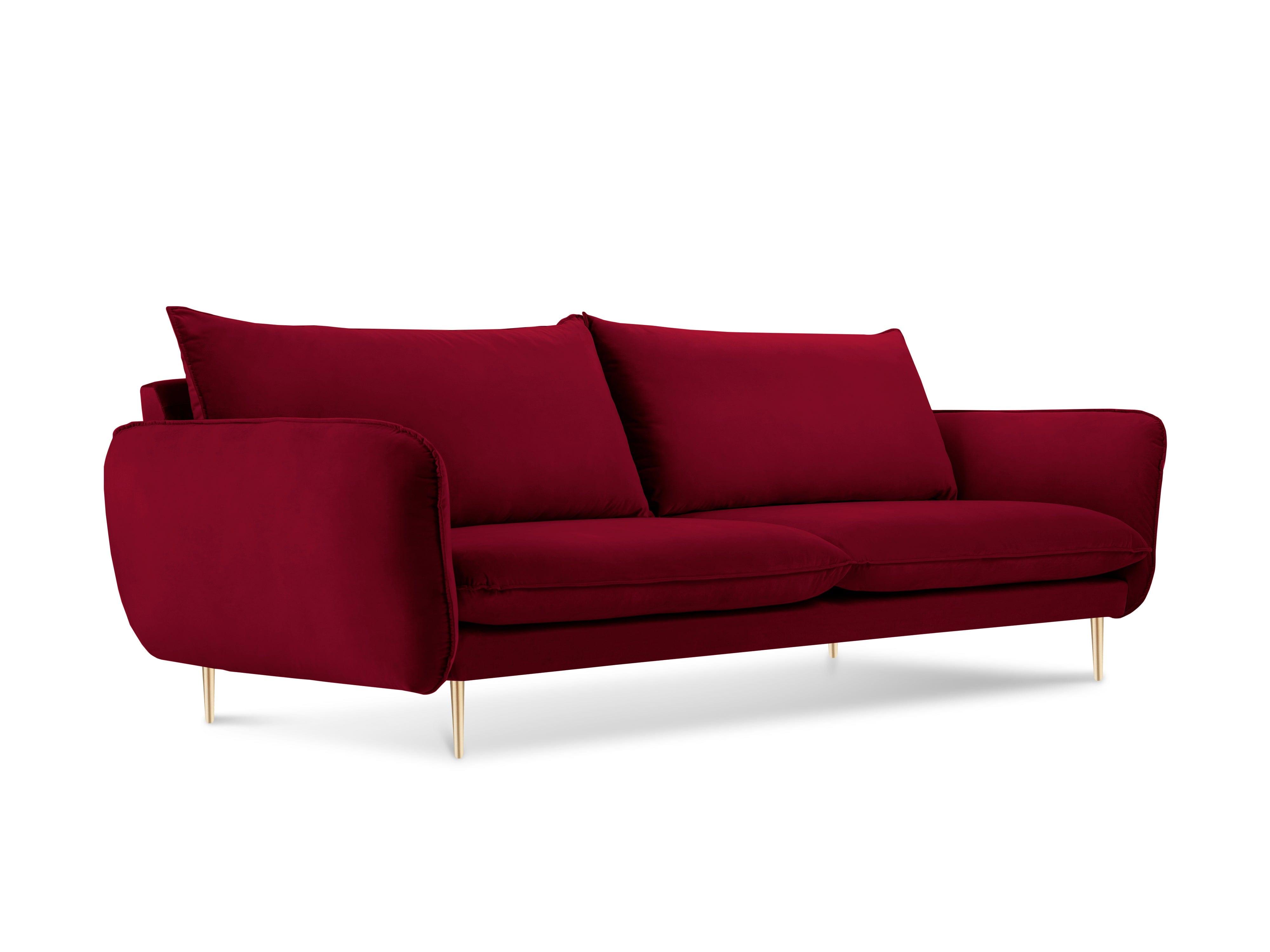 Sofa aksamitna 4-osobowa VIENNA bordowy ze złotą podstawą Cosmopolitan Design    Eye on Design