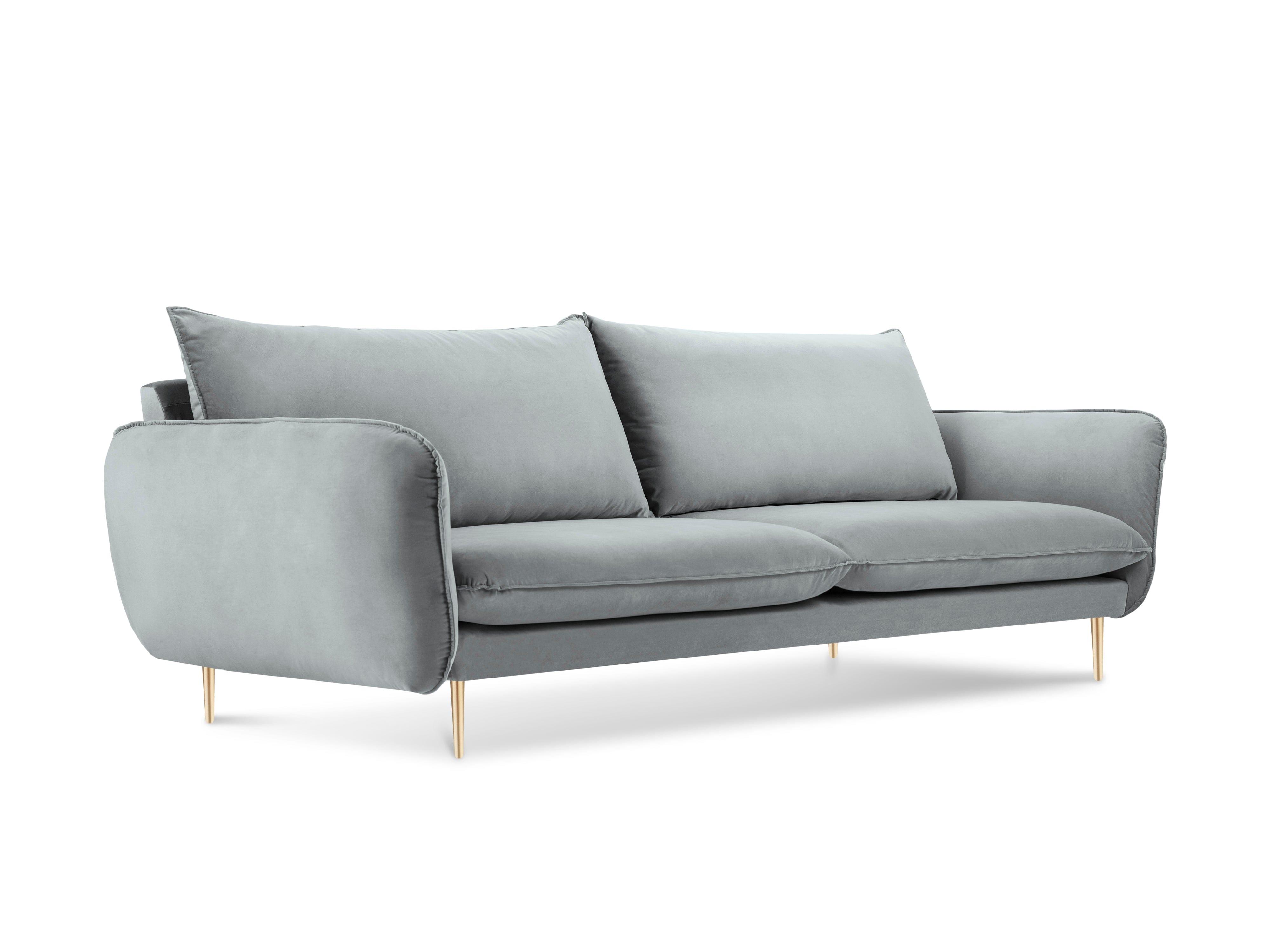 Sofa aksamitna 4-osobowa VIENNA jasnoszary ze złotą podstawą Cosmopolitan Design    Eye on Design