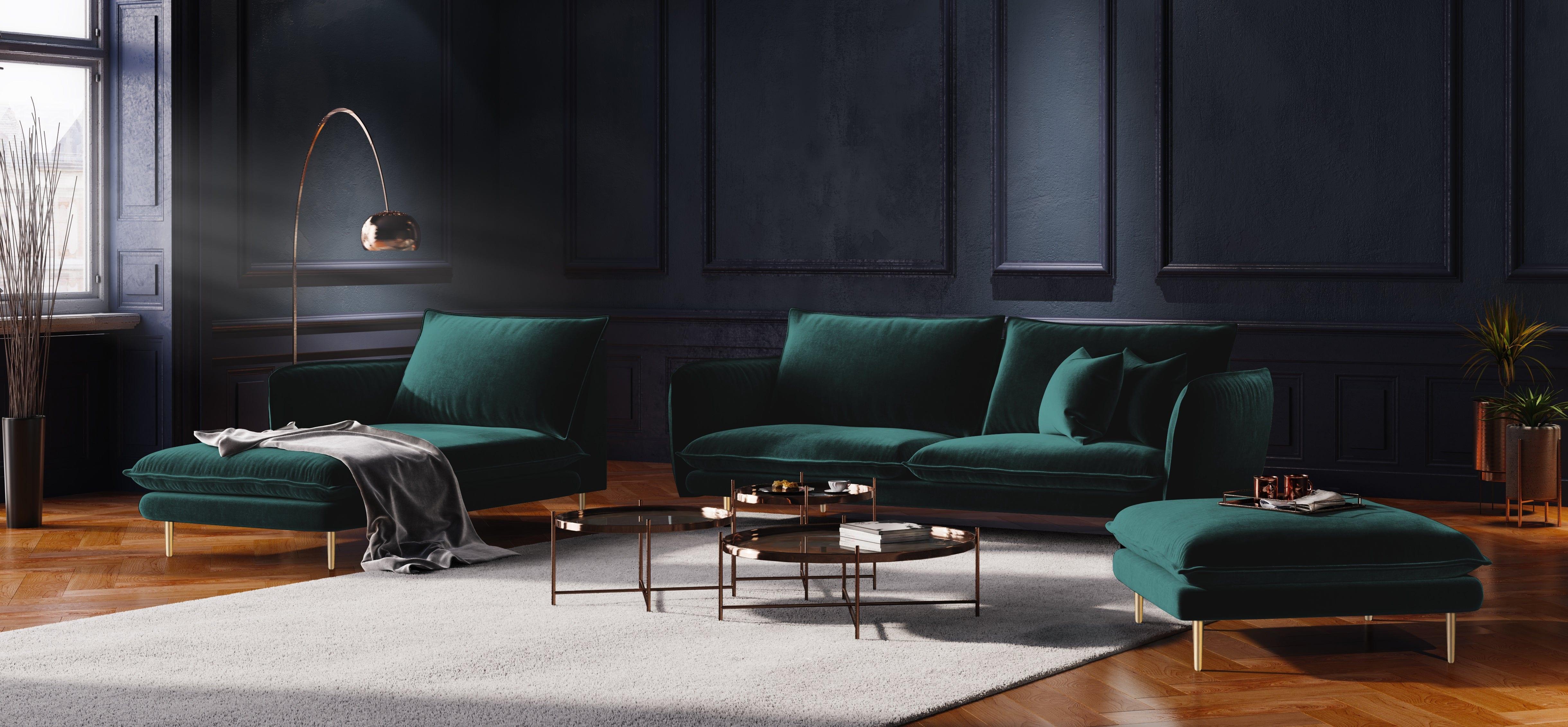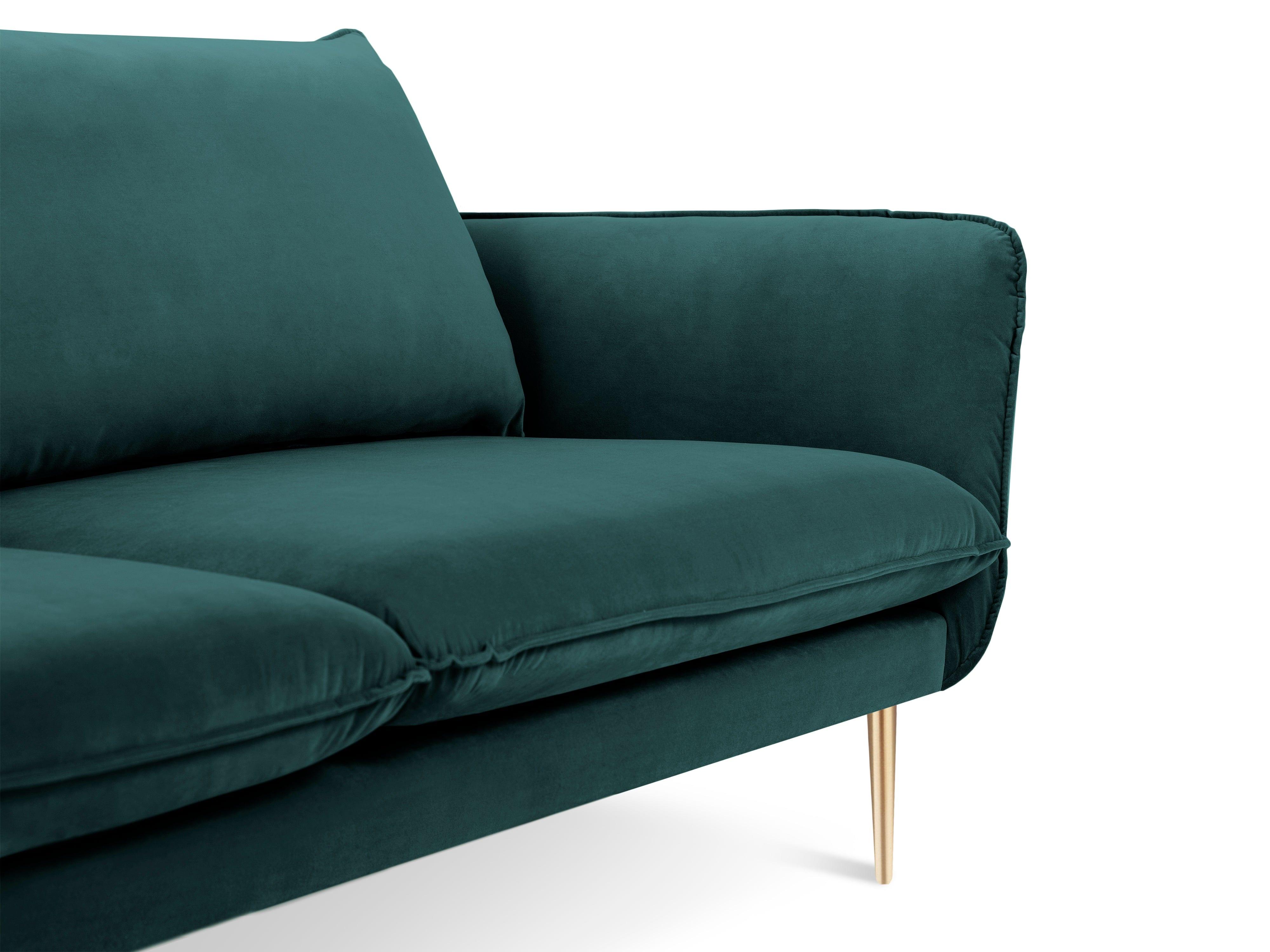 Sofa aksamitna 4-osobowa VIENNA morski ze złotą podstawą Cosmopolitan Design    Eye on Design