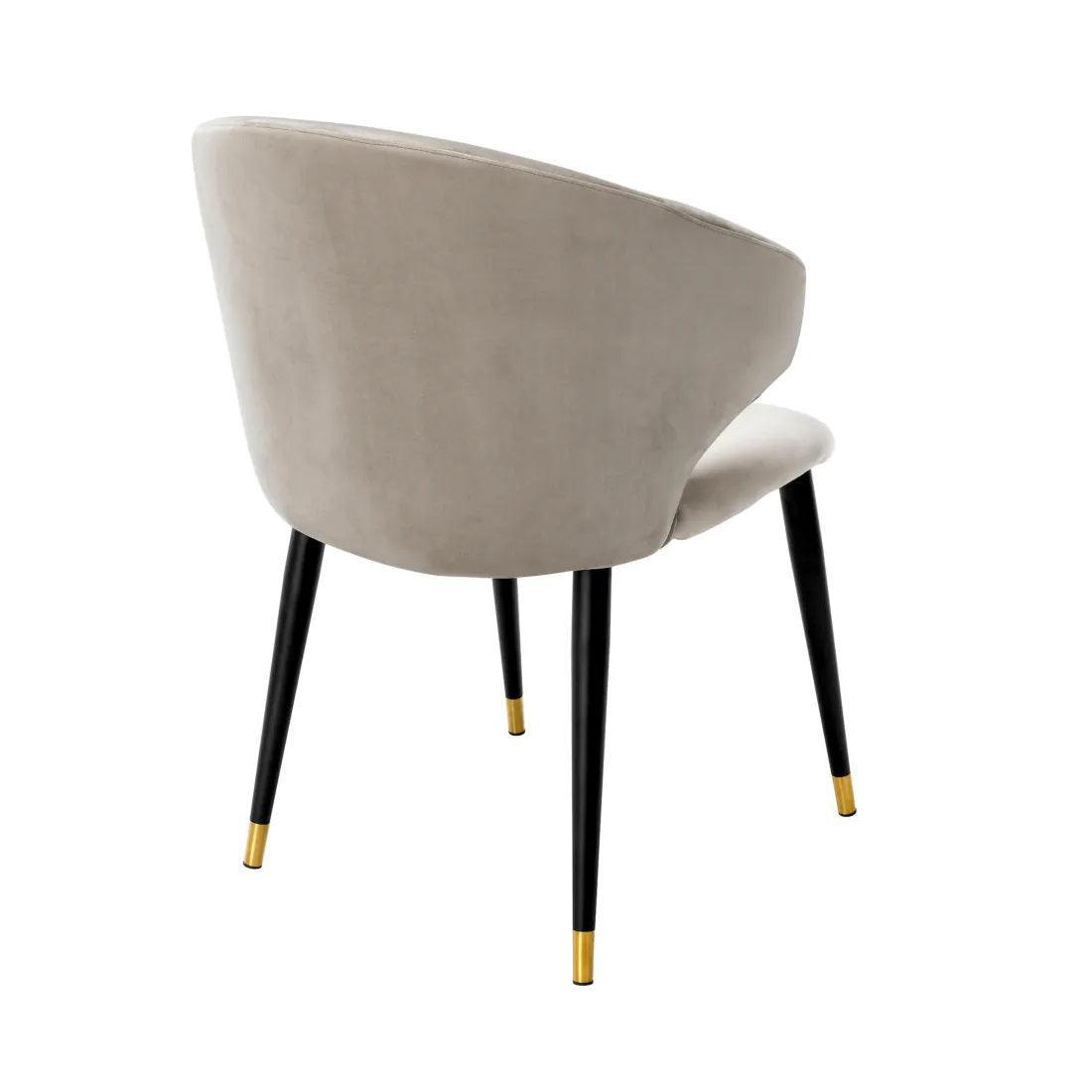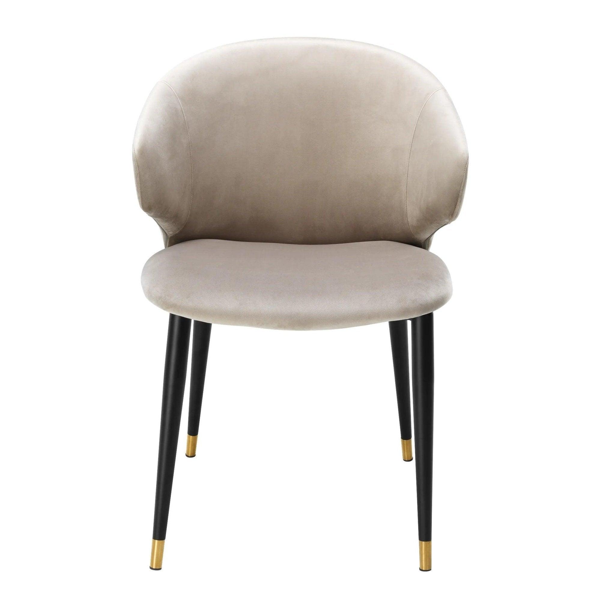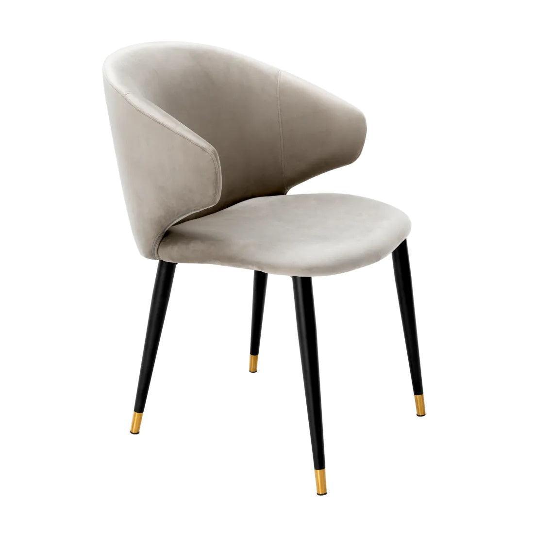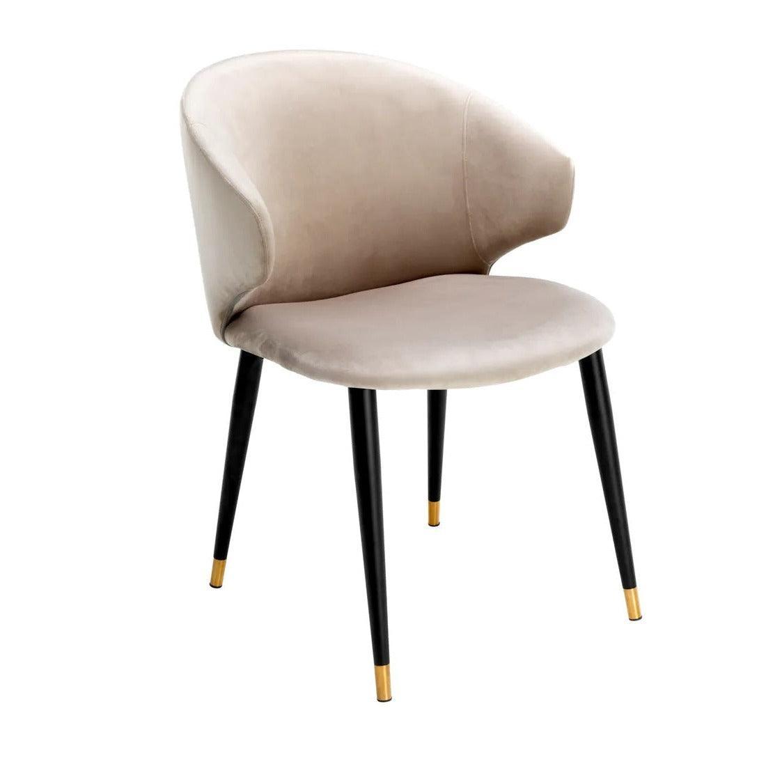 His frame is like the silhouette of an elegant evening outfit - it catches the eye, but does not dominate. The narrowed legs, dressed in brass covers, dancing light with jazz rhythms. How about the seat? Beige velvet upholstery Roche chair is like a soft, velvet voice Elle Fitzgerald - full of depth, warm and subtlety. But Volante is not just a single soloist on your dining room stage. Combine various chairs in this series, and you will create a harmonious choir that will sing a song of a charming vintage style, delighting every guest.