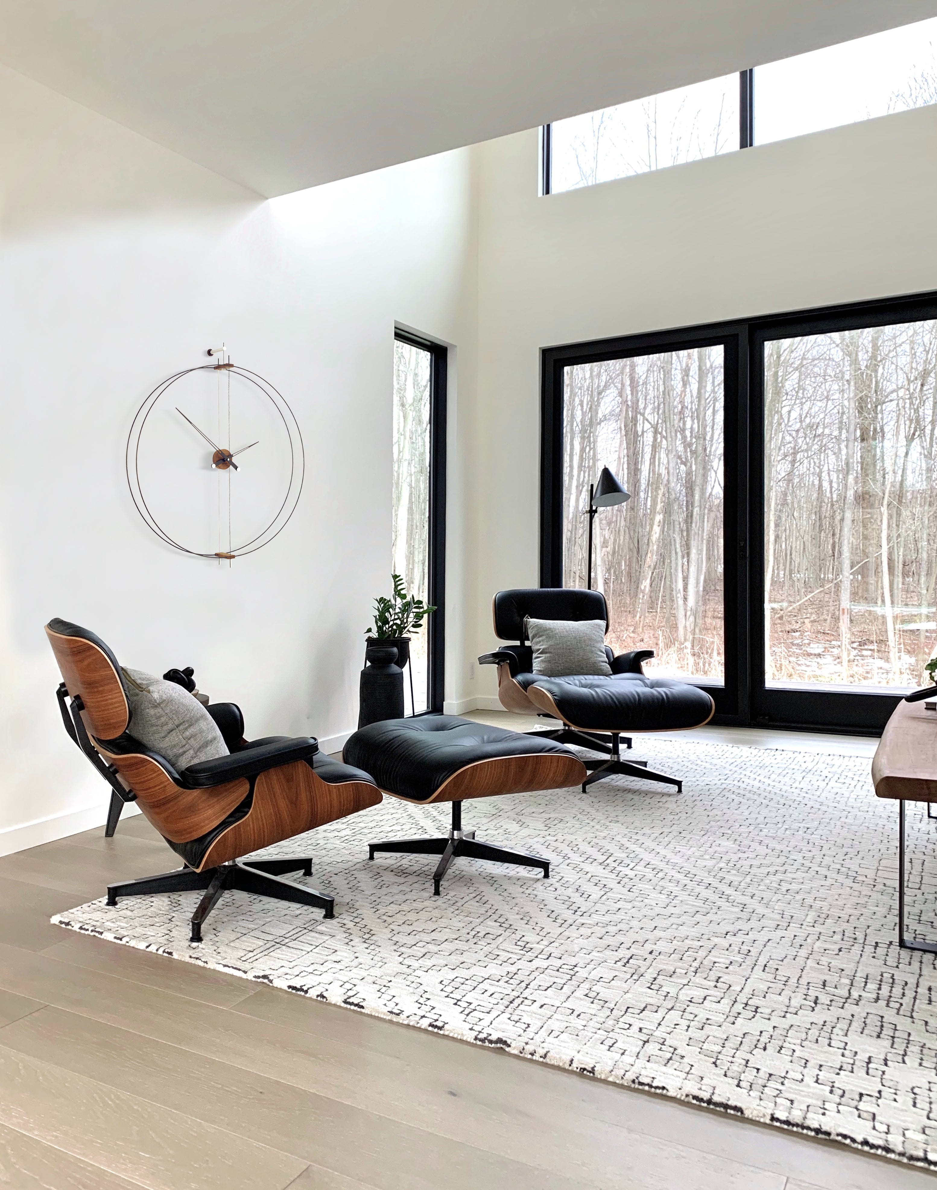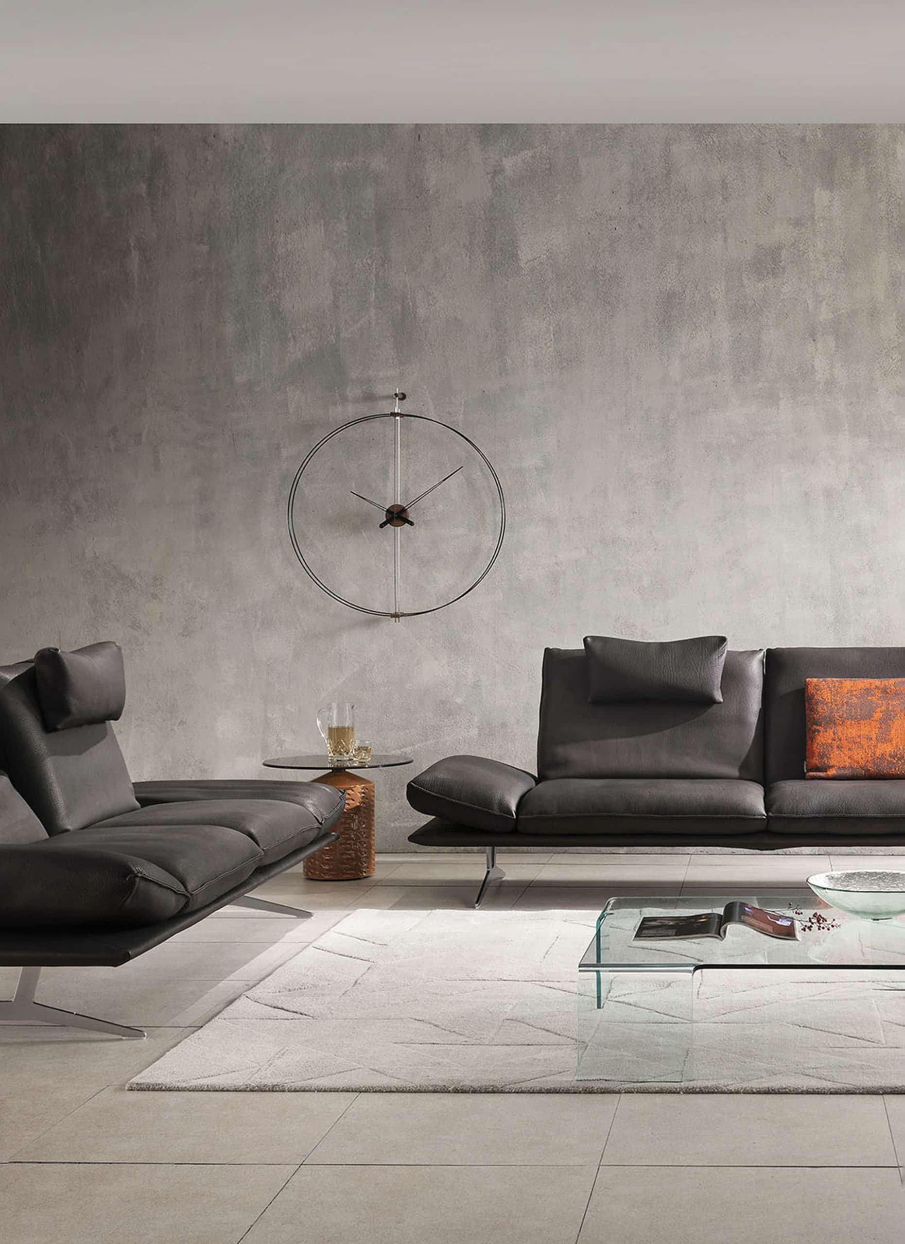 Wall Clock BARCELONA walnut wood with black and silver
