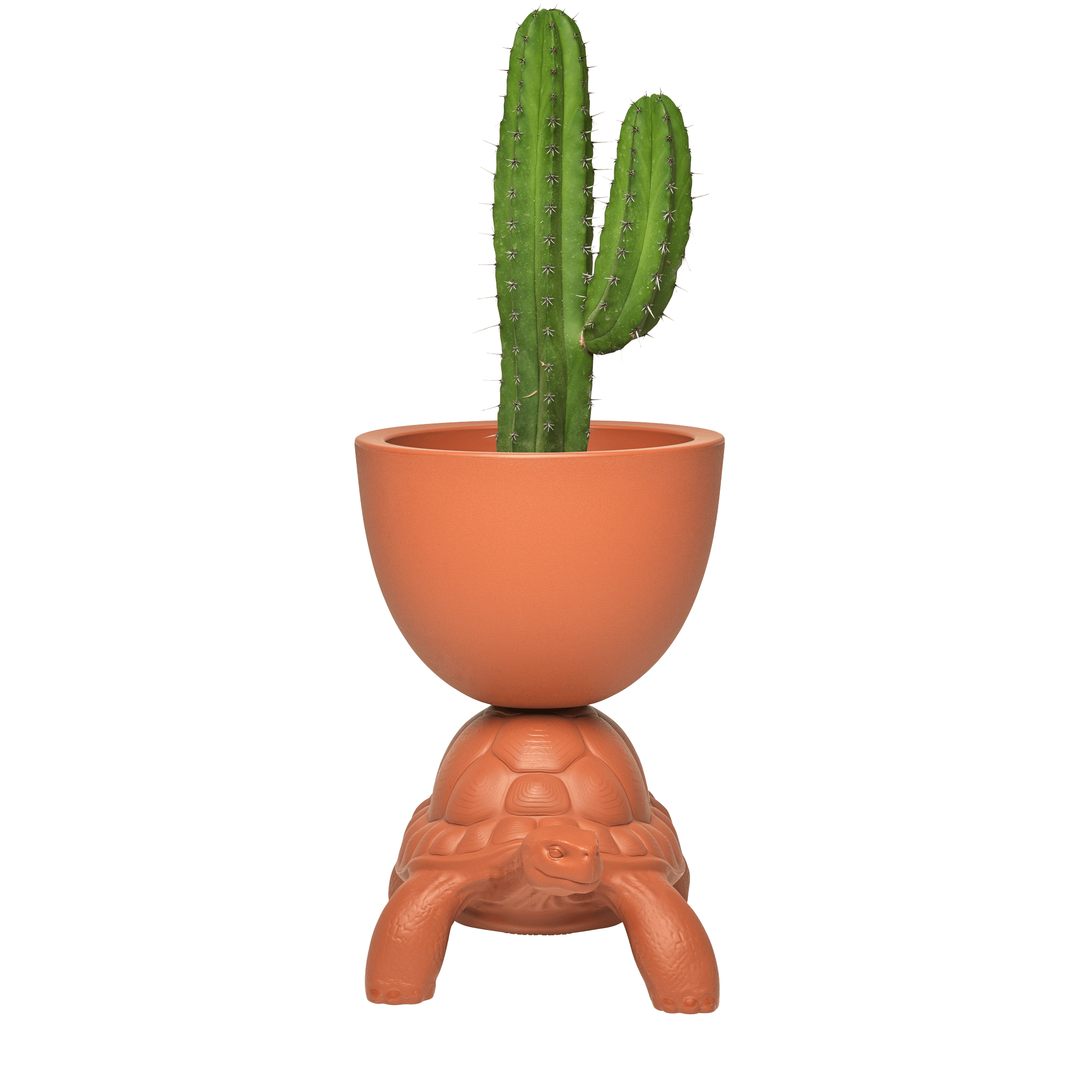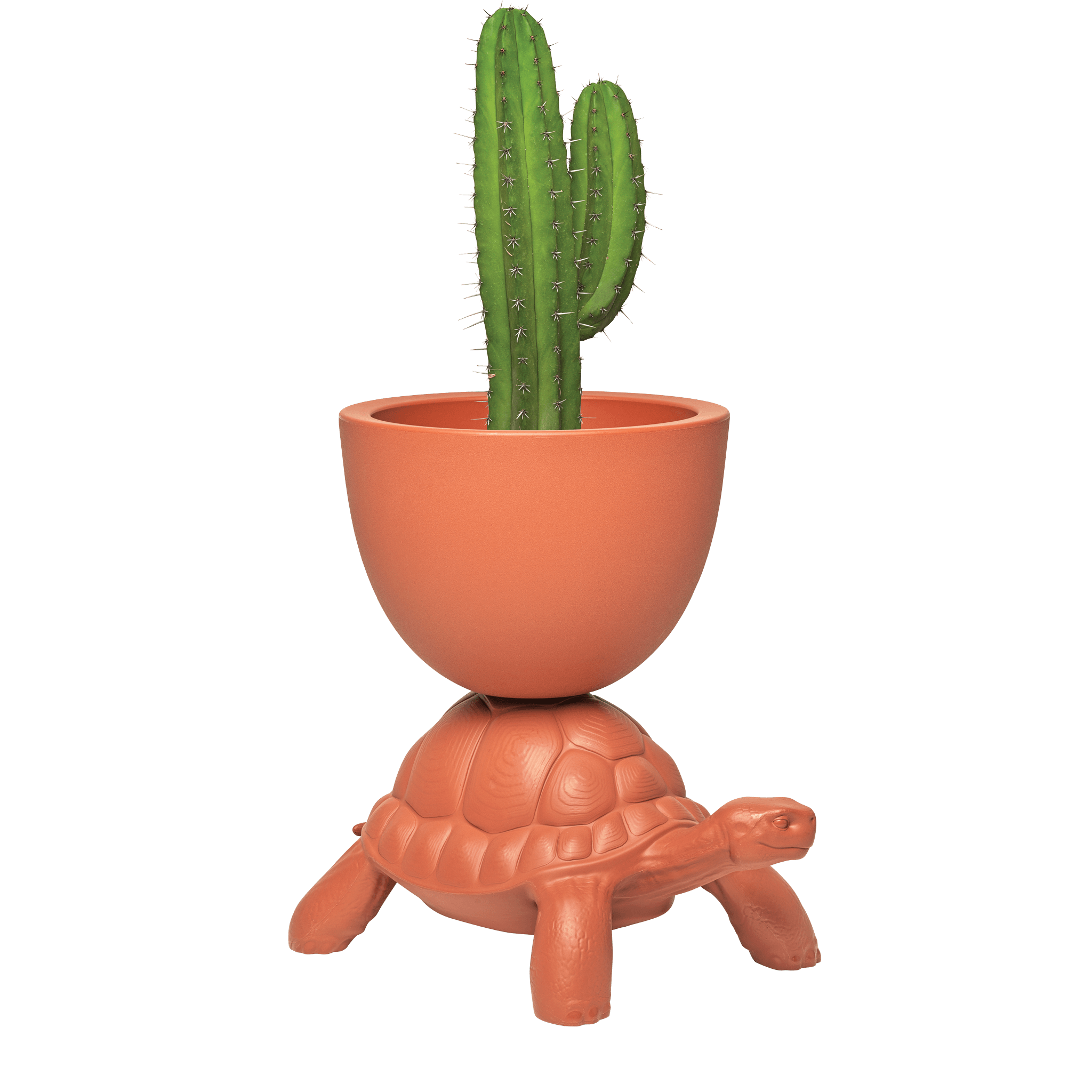 Doniczka jest częścią fascynującej serii, która stanowi uroczą rodzinę żółwi o różnych funkcjach - mogą służyć jako stolik kawowy, pufa, regał, czy właśnie donica. Inspirując się światem natury i jej nieco dziwacznych form, artysta stworzył oryginalną i nieco zabawną konstrukcję, która wprowadzi do naszych domów niepowtarzalny design i uśmiech na twarzy gości.