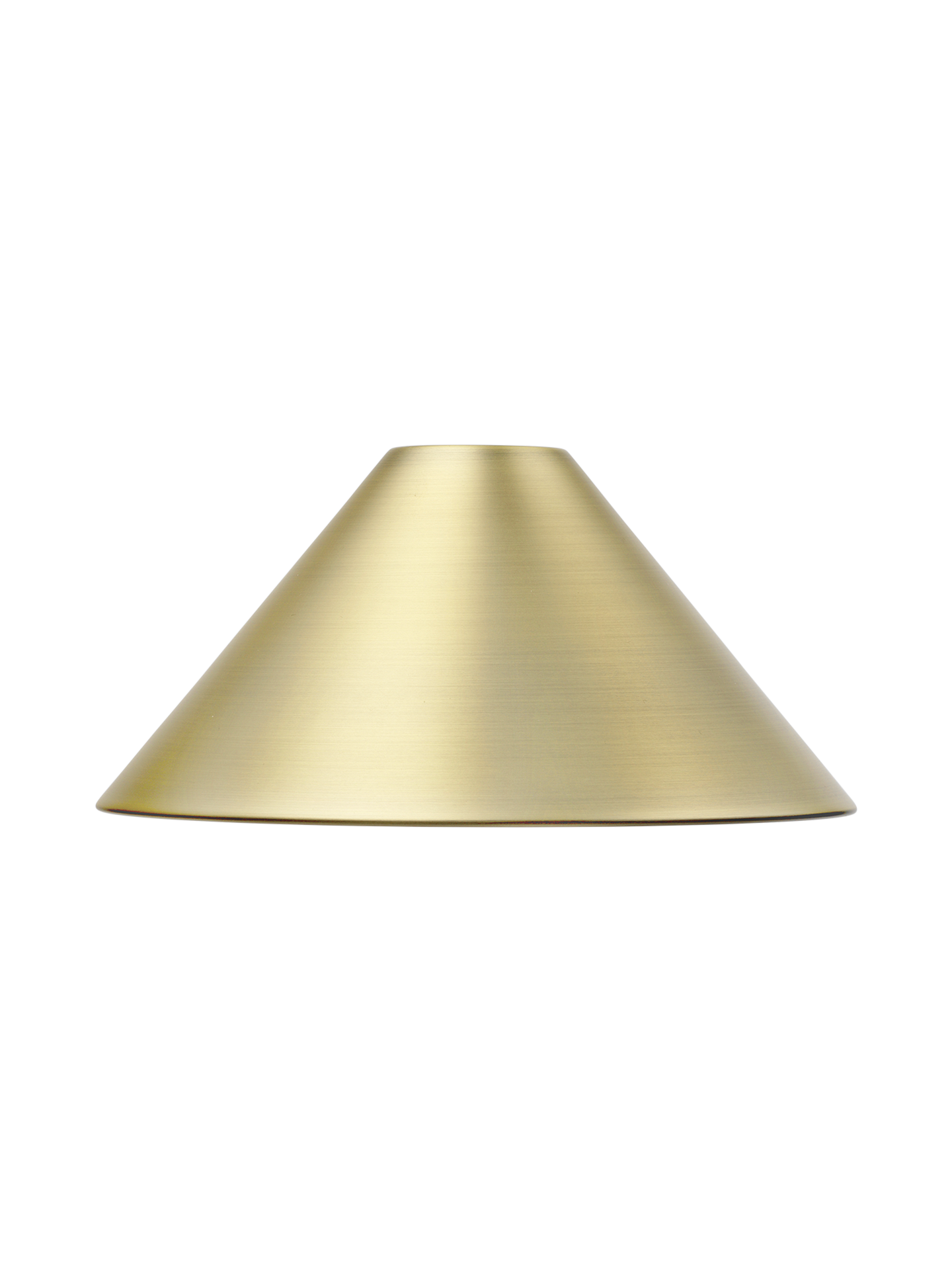 Abażur Collect Cone to nowoczesna interpretacja klasycznych kloszy w stylu Coolie i Empire. Wykonany z metalu pokrytego mosiądzem, posiada stożkowy kształt, który nadaje mu elegancji i funkcjonalności. Wnętrze abażura jest pomalowane na biało, co skutecznie odbija światło, kierując je dokładnie tam, gdzie jest potrzebne. To ponadczasowy projekt, który doskonale wpisuje się w różne style wnętrz.