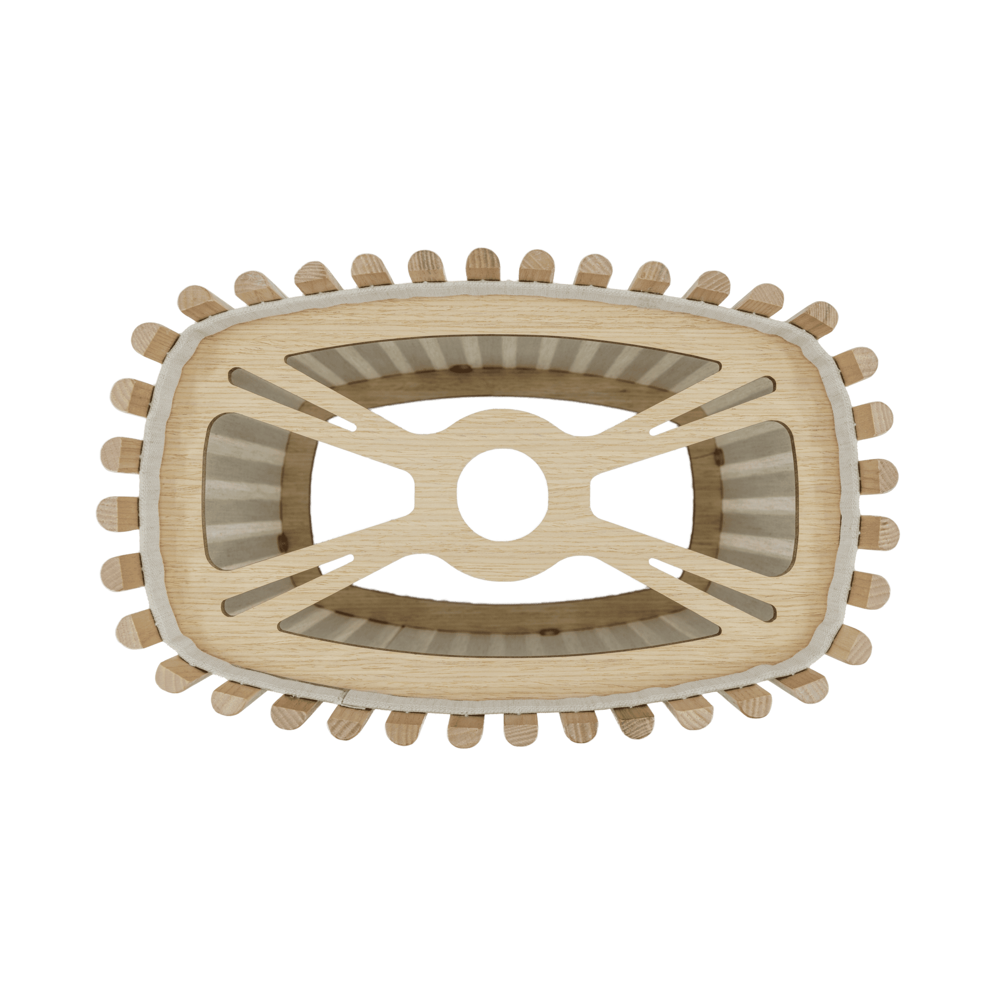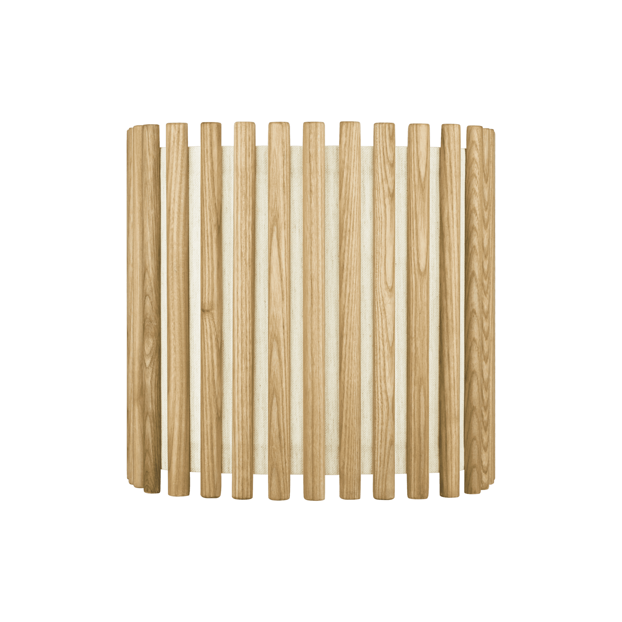 Kolekcja Komorebi składa się z różnorodnych abażurów wykonanych z drewnianych lameli i tekstyliów. Połączenie tych naturalnych materiałów pomaga stworzyć domową atmosferę pełną spokoju i ciepła.