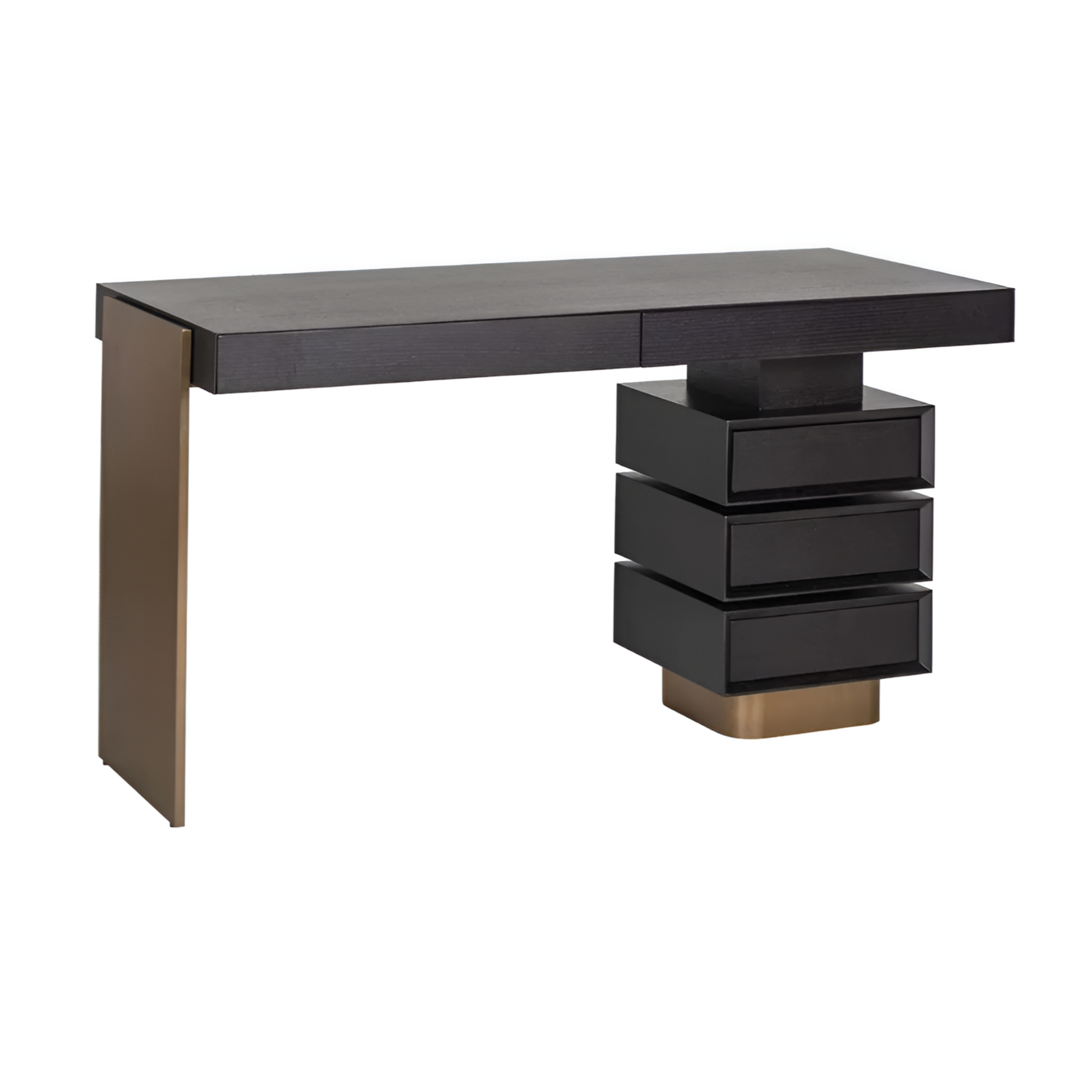 Biurko CONNAR czarny z mosiężnym wykończeniem