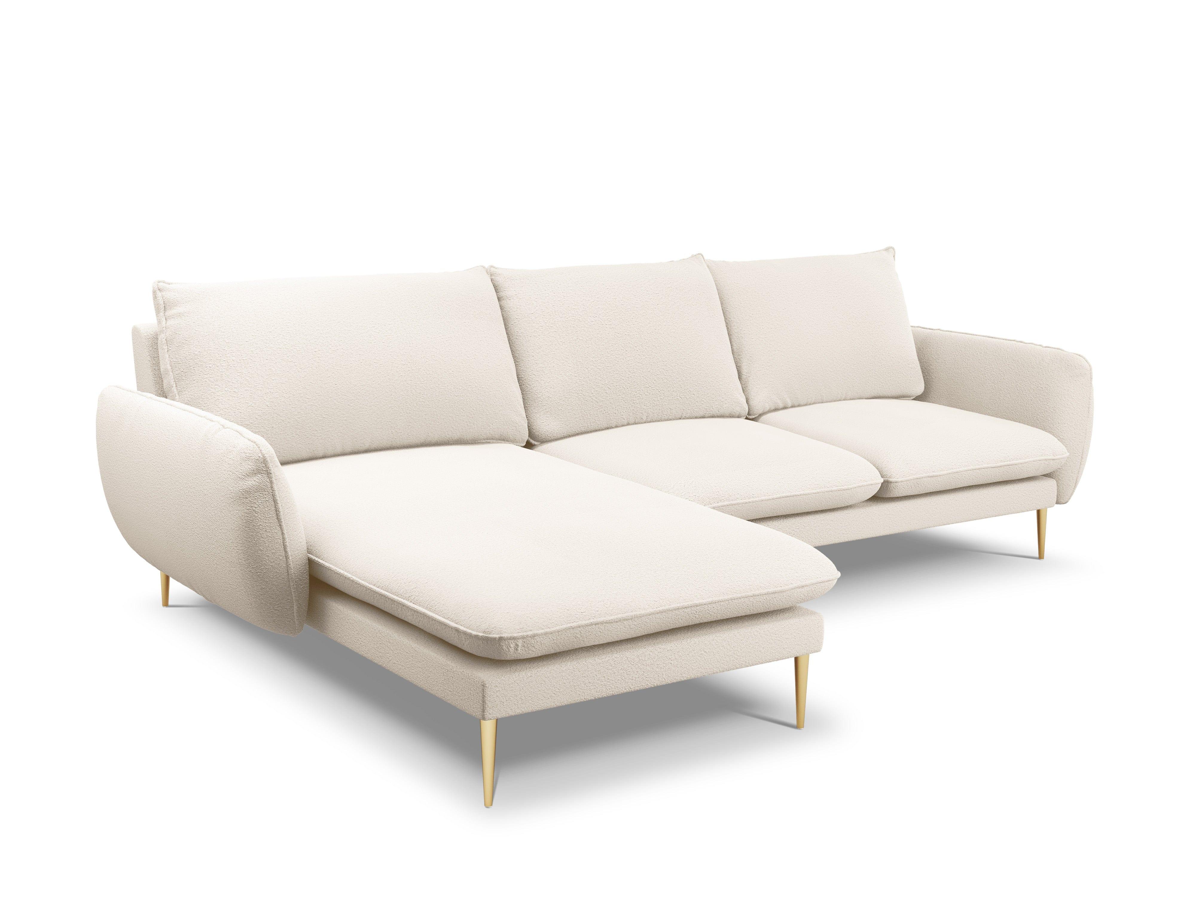 Narożnik w tkaninie boucle lewostronny VIENNA beżowy ze złotą podstawą